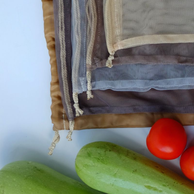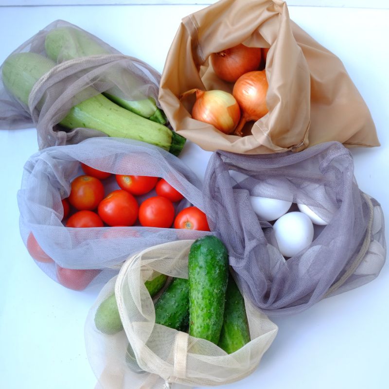 Еко мішечки - геніальна ідея замінити тисячі вагових пластикових пакетів для фруктів та овочів. Zero waste пакети (0 відходів) також можна використовувати для зберігання речей. Тканина – міцна прозора сітка, плащівка. Зав'язки із шнура, що затягується з 2 сторін, куди можна клеїти цінник після зважування. Прання у мильному розчині при 30 градусах. Розміри (+/-0,5 см) 37*26 30*26 32*24 24*23 32*25 (мішок із плащової тканини)