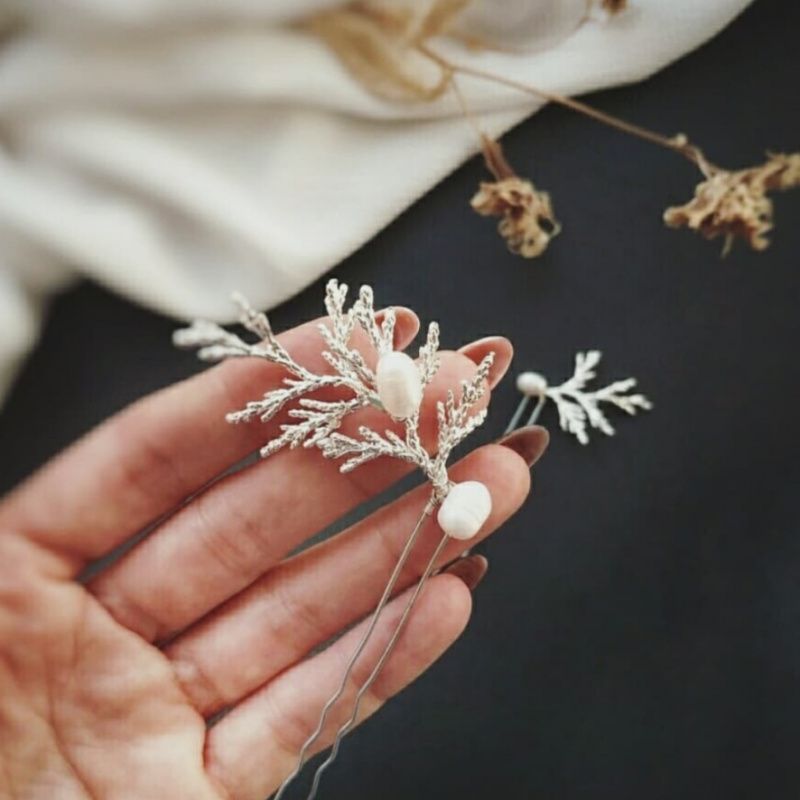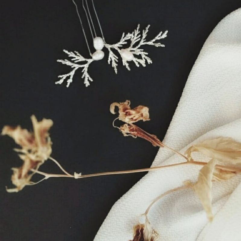 Ювелірний дріт, річкові перлини, металеві корали з родієвим покриттям.