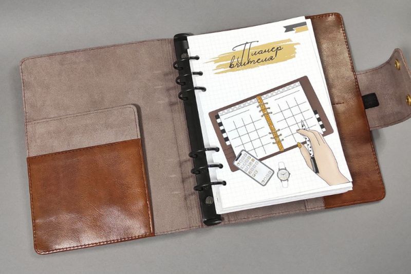 Планер на кільцевому механізмі дає можливість користуватися блокнотом не один рік, просто замінивши блок аркушів на новий.