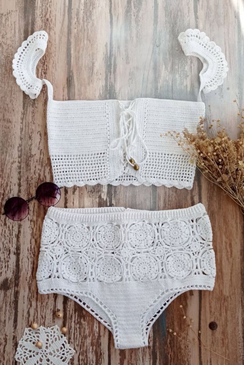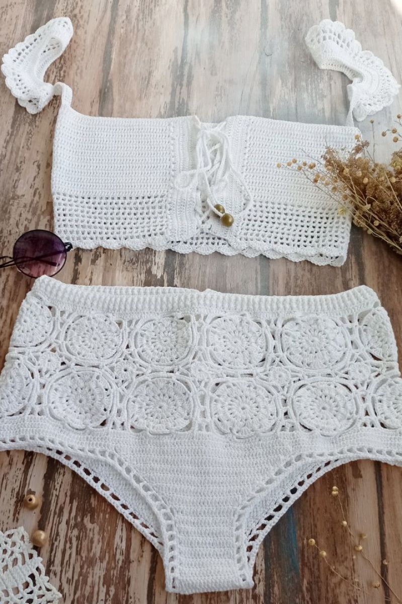 купальние в стилі ретро виготовлений із 100% бавовна, декорований дерев'янними гудзиками. По краю вставлена силіконова нитка для більш комфортного сидіння на тілі. Розмір від 44 до 46. Можливе виготовлення в іншому кольорі.