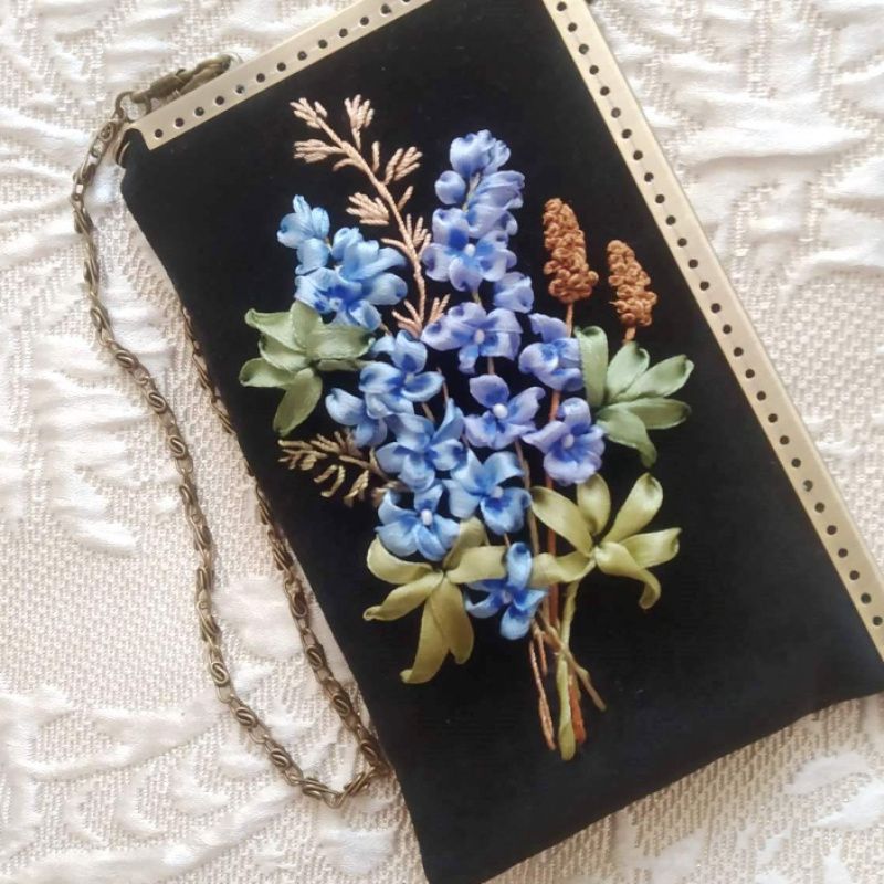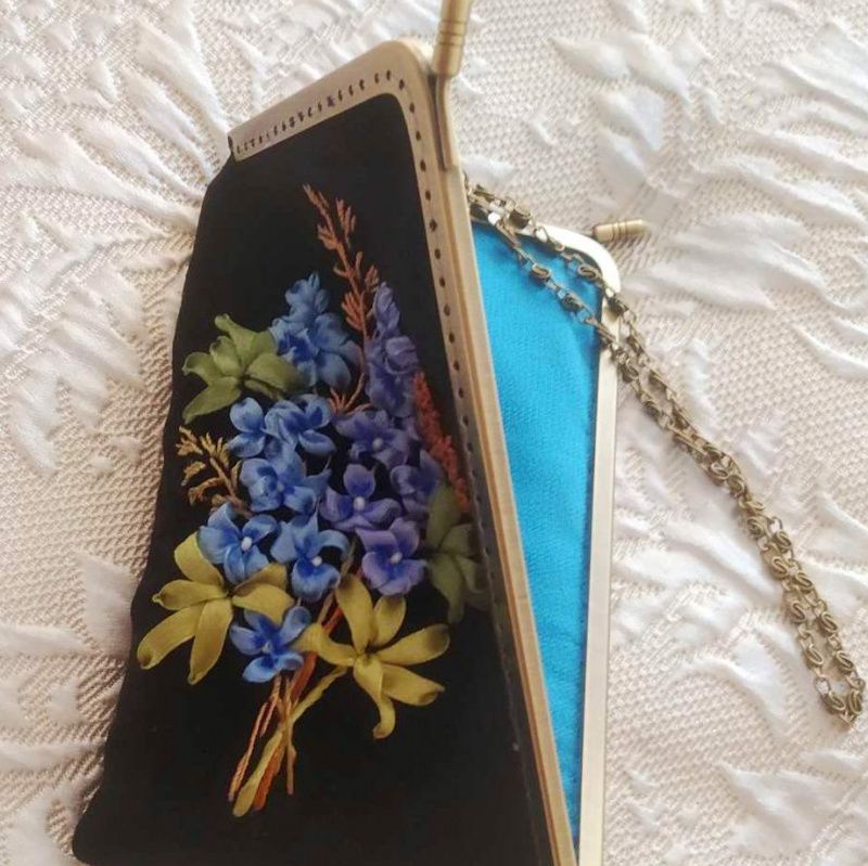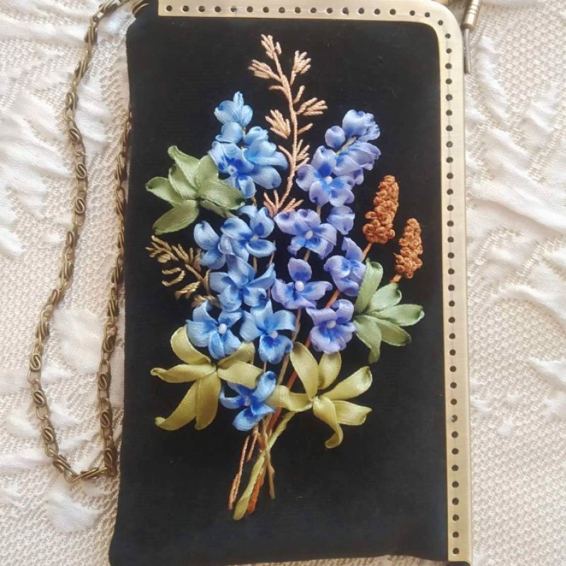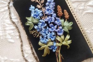 Чохол для телефону чи смартфона з незвичайним кутовим фермуаром. Пошитий з чорного велюру, Всередині на підкладці, посилений дублерином. За рахунок цього добре тримає форму та надійно захищає телефон. Не великий, зручно тримати у руці, можна носити на ланцюжку. Розмір 11*18 см. Стильна річ незмінно приковує до себе здивовані та захоплені погляди! Ніжна вишивка стрічками не залишає байдужим нікого! Незамінна та універсальна річ у наш час! Повністю авторська робота, єдиний екземпляр.