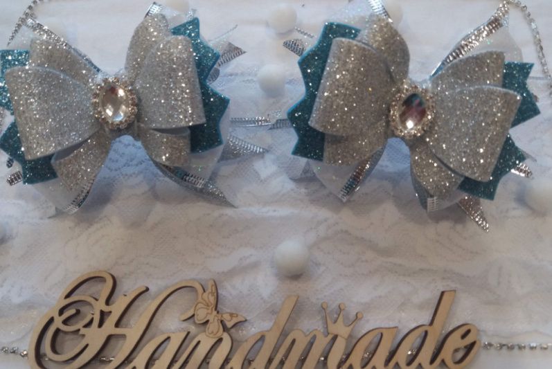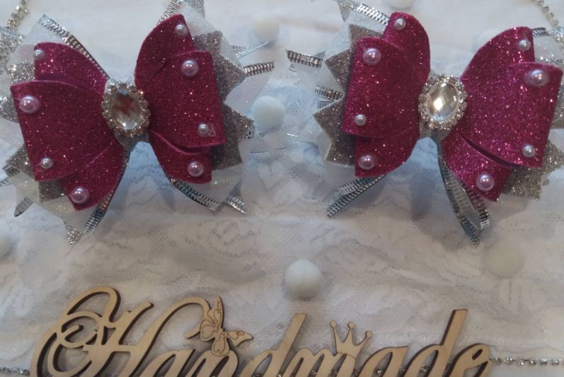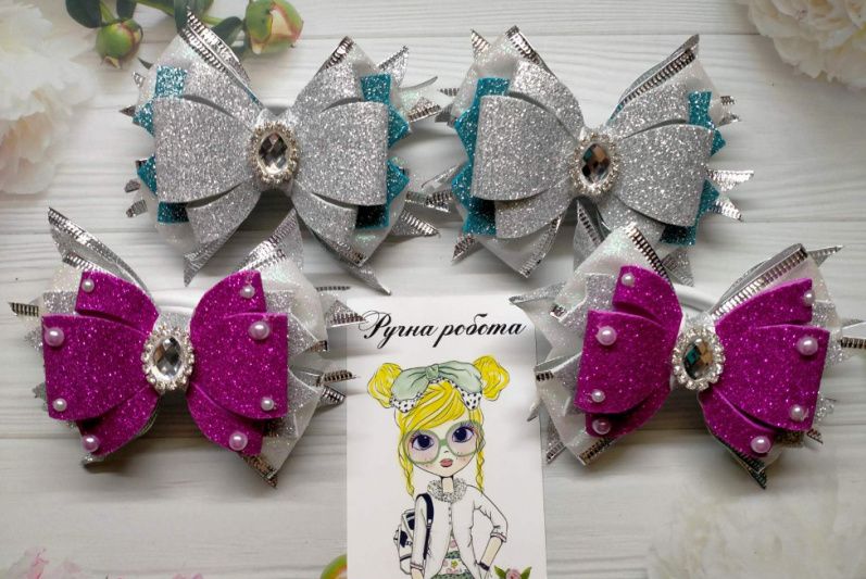 Сяючі бантики ручної роботи стануть найкращою прекрасною для вашої принцеси та доповнять її яскравий образ. Основа заколка 5.5 см.Ціна вказана за пару.