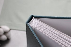 Розмір 20х23см, 40 сторінок білого кольору (20 аркушів). Можна розмістити:
