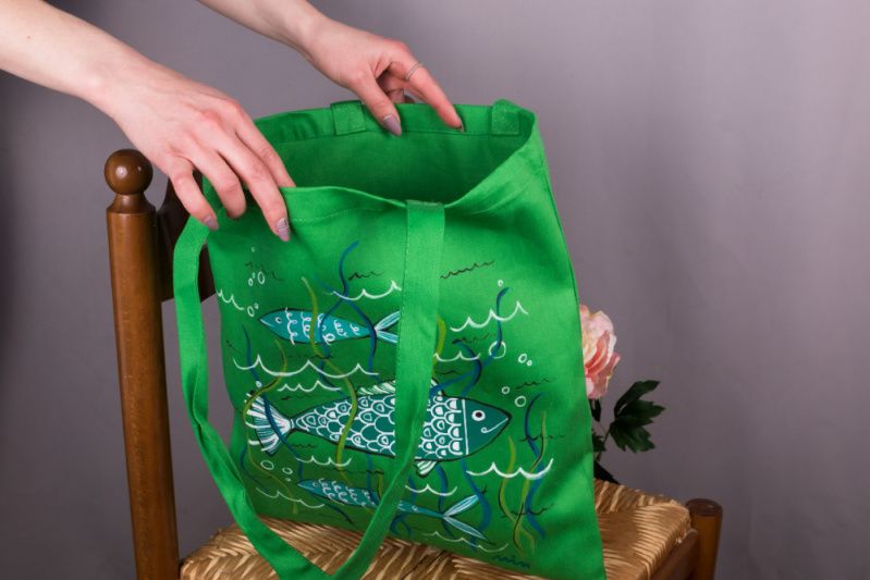 Зручна та практична сумка-шопер із розписом ручної роботи. Із цією сумкою ви подбаєте про природу, адже вона замінить вам поліетиленові пакети. Малюнок виконаний якісними акриловими фарбами. Виріб можна прати в пральній машині на делікатному режимі виворітною стороною. Сумка виконана із натуральної тканини - саржа. Розмір 36см х 38см