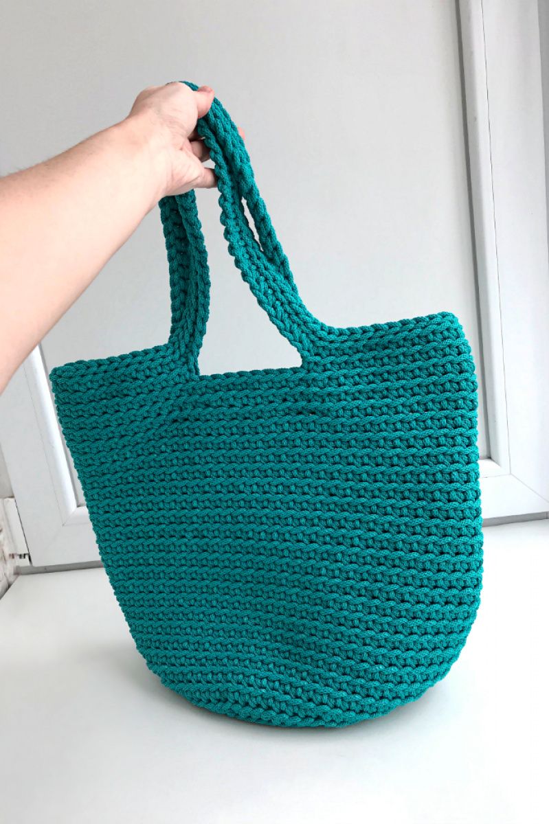 Зручна і практична сумка-тоут ідеально підходить для прогулянок, подорожей, походів по магазинах і повсякденних справ. Головним достоїнством вважається можливість прання в пральній машині на щадному режимі. Висота 36 см, ширина 36 см, висота з ручками 56 см. Без підкладки. Колір: морська хвиля. Можливо виконання сумки в будь-якому кольорі і розмірі, фурнітуру також підберемо індивідуально.