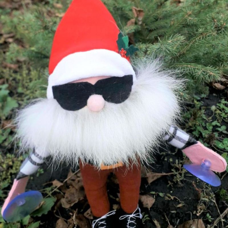 Цей чарівний та кумедний Санта зростом 40см вже чекає свят та бажає потрапити під вашу новорічну ялинку. Він обіцає принести мішок подарунків та посмішок у Новий рік. Також може стати прикрасою вашого авто на дні новорічних свят, бо має дуже міцні ручки, котрі тримаються на склі. Щоб швидко бігати та встигнути рознести усім подарунки в нього є найкрутіші та найшвидші кеди. Ось такий він Дід Мороз або Санта, у єдиному екземплярі.