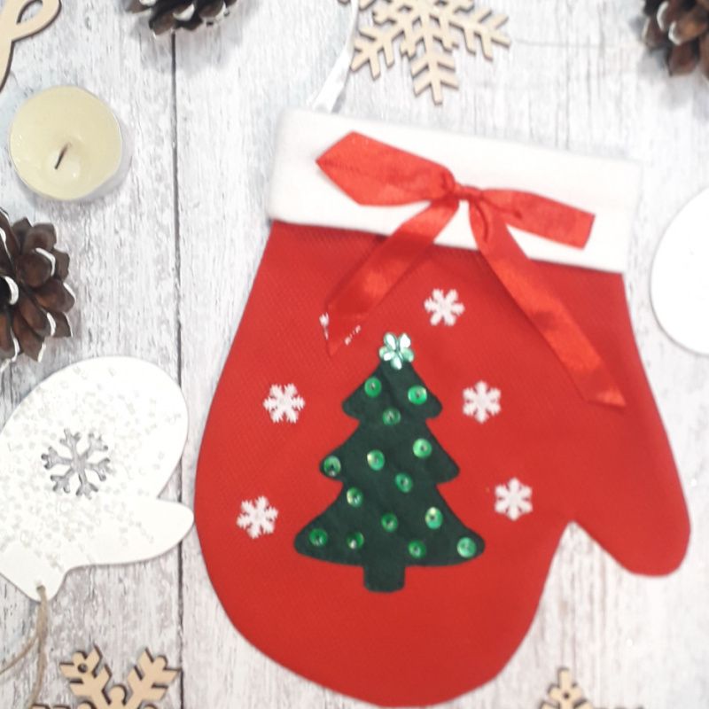 Новорічна рукавичка з тканини. Рукавичка є аналогом Різдвяної шкарпетки. Висота 20 см, ширина також 20 см, висота підвісу - 9см. Виготовлена з ткинини вручну та за допомогою швейної машини. Рукавичка декорована аплікацією з фетру та інших тканин. Можна використовувати для оформлення новорічного та Різдвяного інтер′єру або для подарунків діткам і дорослим на Новий рік, свято Миколая. Також гарна ідея буде для корпоративного подарунку на замовлення. Є змога виготовити в будь-яким іменем на спеціальному ярлику або у верху рукавички на замовлення. При побажанні є святкове пакування.
