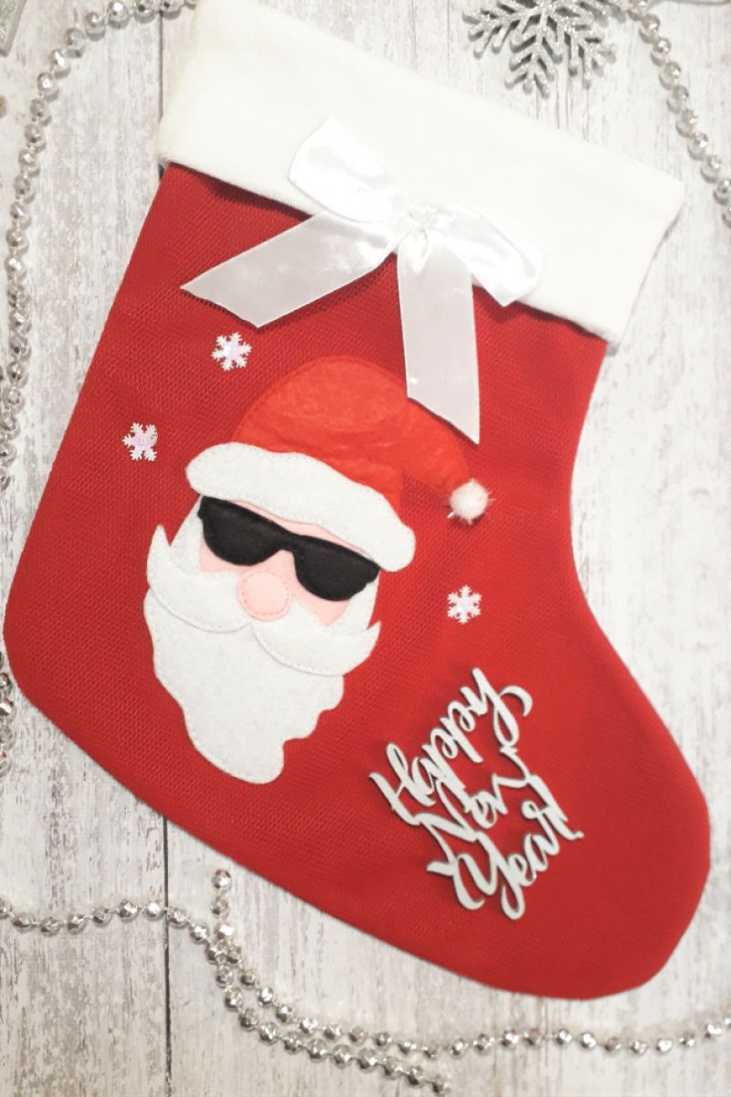 Новорічна шкарпетка з тканини. Висота 28 см, ширина також 28 см, висота підвісу - 9см. Виготовлена з тканини вручну та за допомогою швейної машини. Шкарпетка декорована аплікацією з фетру та інших тканин. Можна використовувати для оформлення новорічного та Різдвяного інтер′єру або для подарунків діткам і дорослим на Новий рік, свято Миколая. Також гарна ідея буде для корпоративного подарунку на замовлення. Є змога виготовити в будь-яким іменем на спеціальному ярлику або зверху шкарпетки на замовлення. При побажанні є святкове пакування.