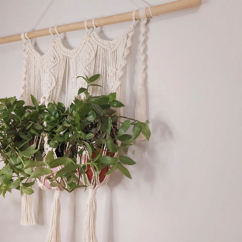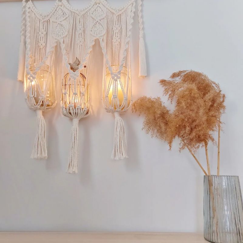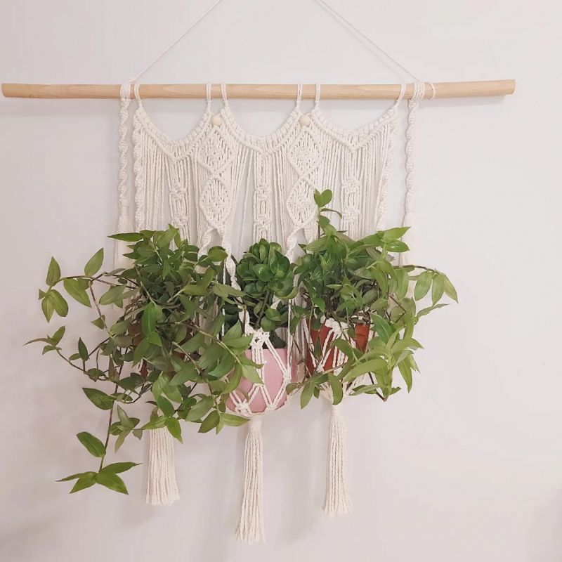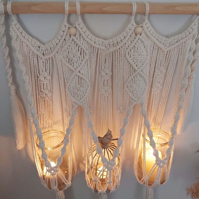 Потрійне кашпо в техніці макраме чудесним чином вписується в абсолютно будь-який інтер'єр. Вашим квіточок буде затишно і комфортно в такому підвісі. А в подяку вам, вони будуть рости, як на дріжджах і наповнювати будинок киснем і радістю! Довжина - 86 см. Висота - 78 см. 550 UAH Писи. Якщо рослини - це не ваше, то вазони можна замінити на свічки і буде вам щастя! Вазони та свічники для прикладу, продається без них, тільки плетіння.