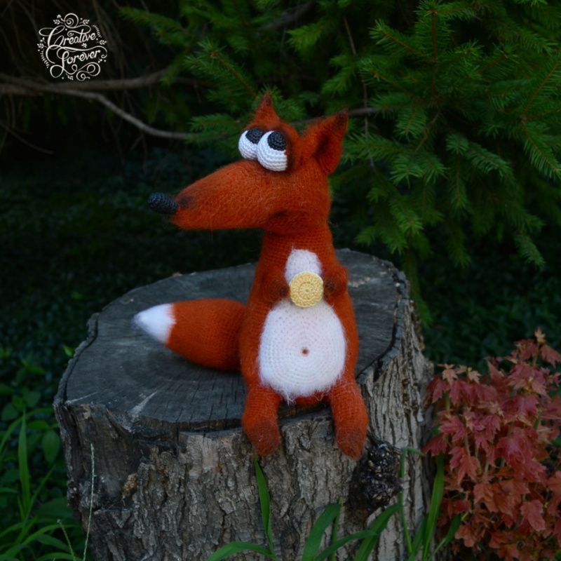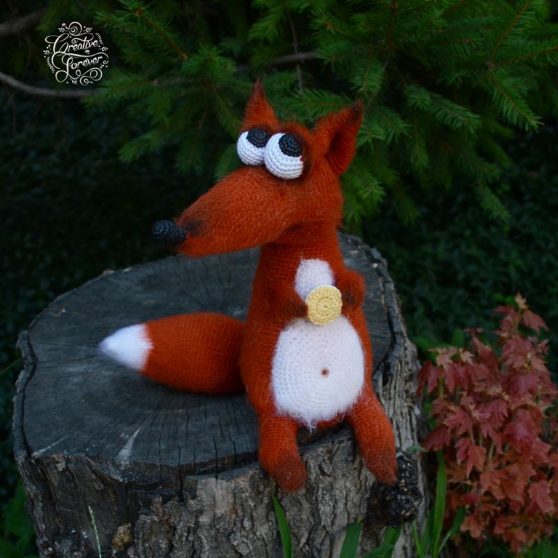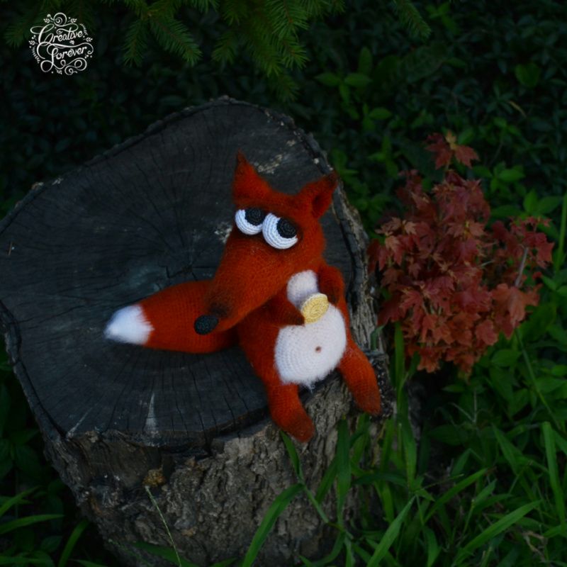 В'язана лисичка з печивом. Задумлива і трохи з сумними оченятами. Підійде для інтер'єру або в якості колекційної іграшки.