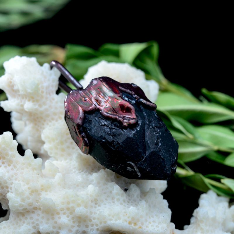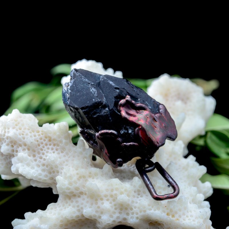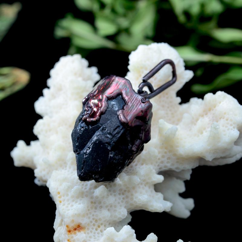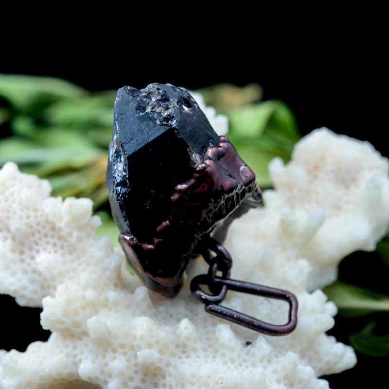 Природний необроблений кристал мориона покритий міддю. Темна патина. Лак. Кристал не піддавався обробці. Необроблені камені можуть мати природні включення, тріщини і шорсткості. Шнурок будь-якої довжини в подарунок.