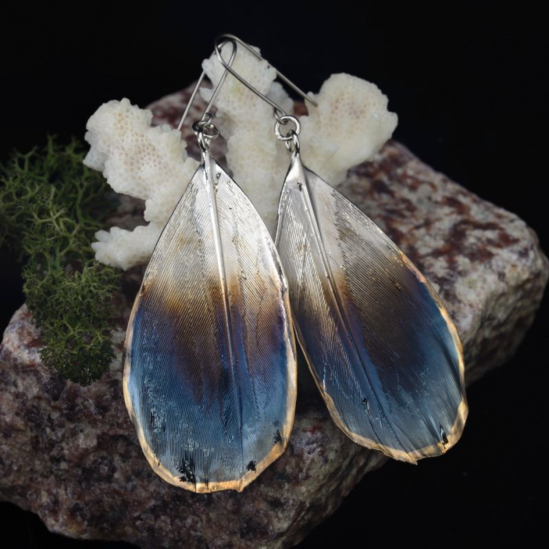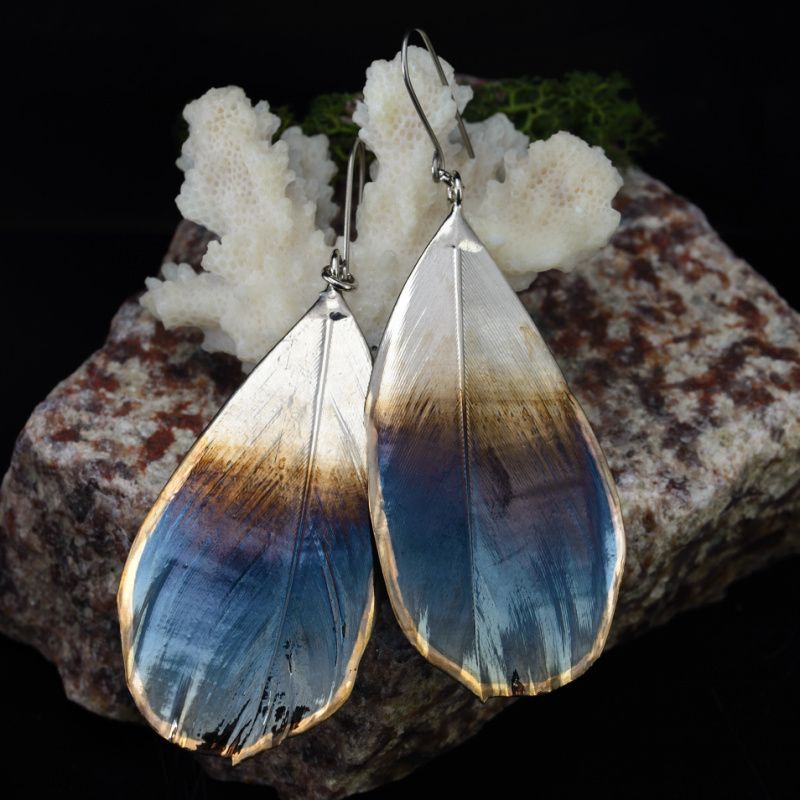 Справжні пір'я птахів сімейства вранових (грачів) покриті міддю, нікелем і металом платинової групи - рутеній. Локальне нанесення золота.