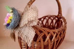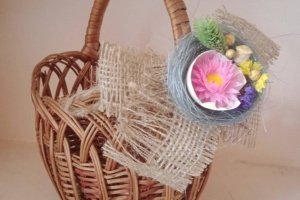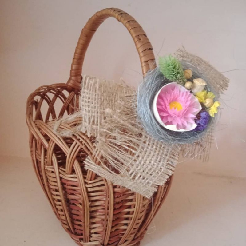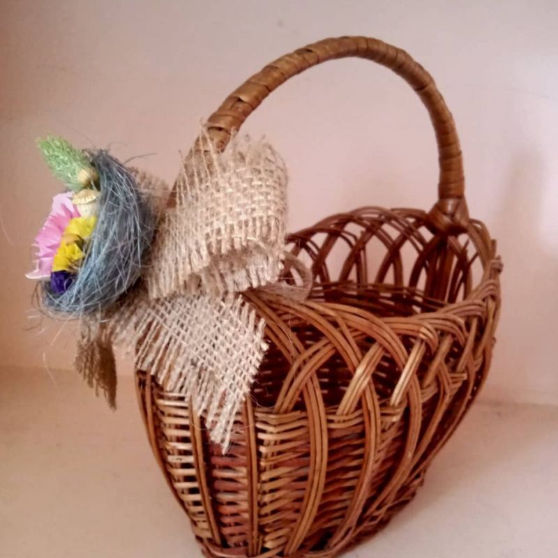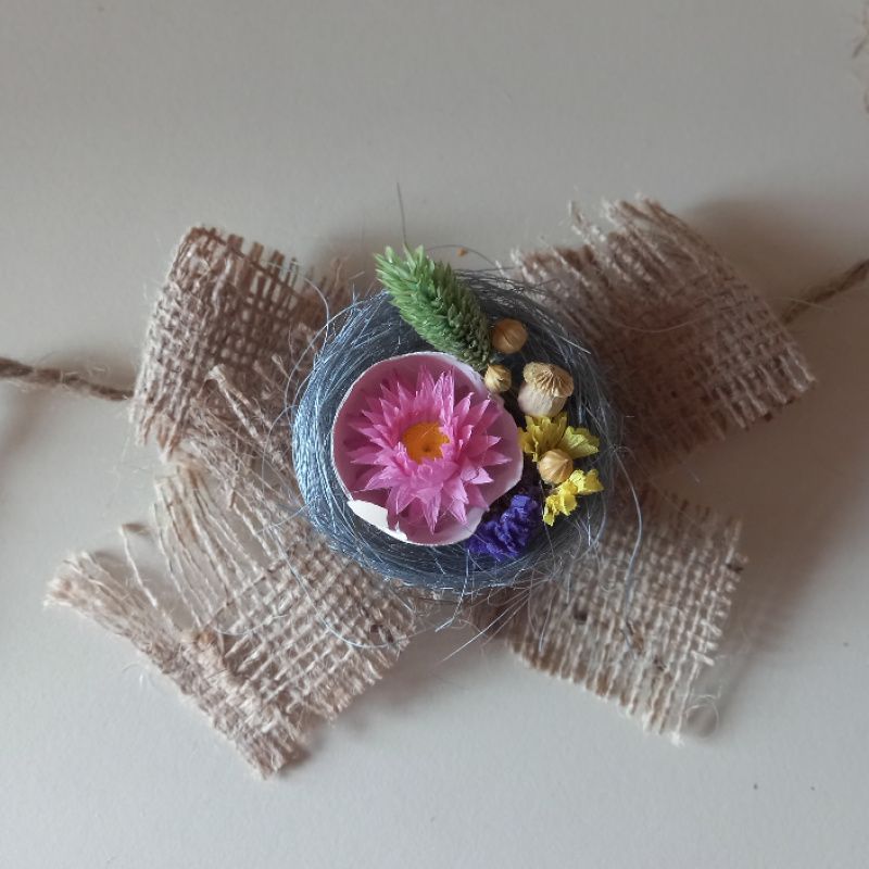 Декор привязний до кошика. На Великодній кошик. Матеріали натуральні-природні:сухоцвіти, мішковина. Розмір 10×15см.
