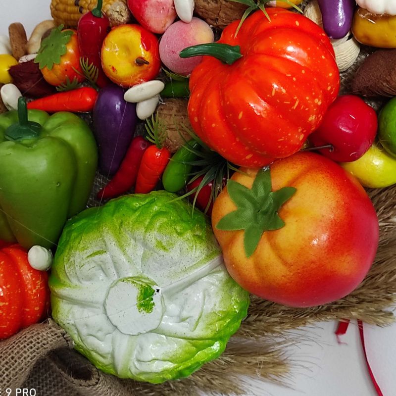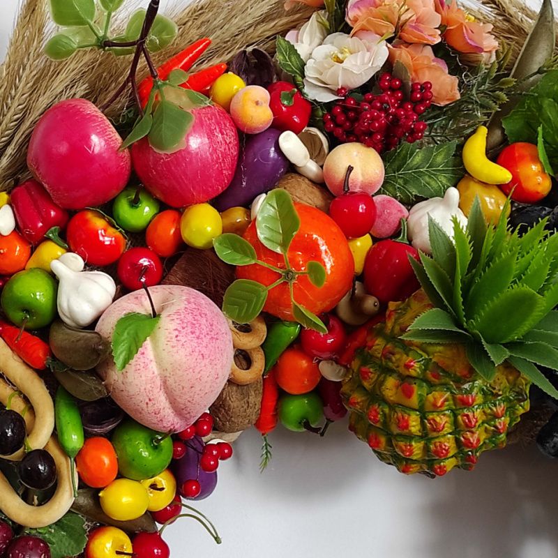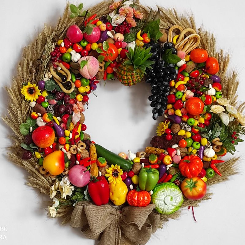Розкішний фруктово-овочевий вінок - символ родючості і достатку.