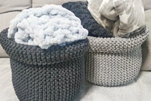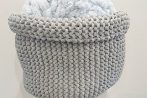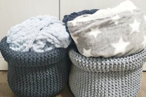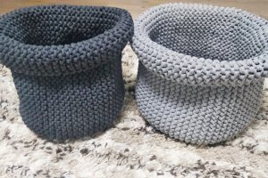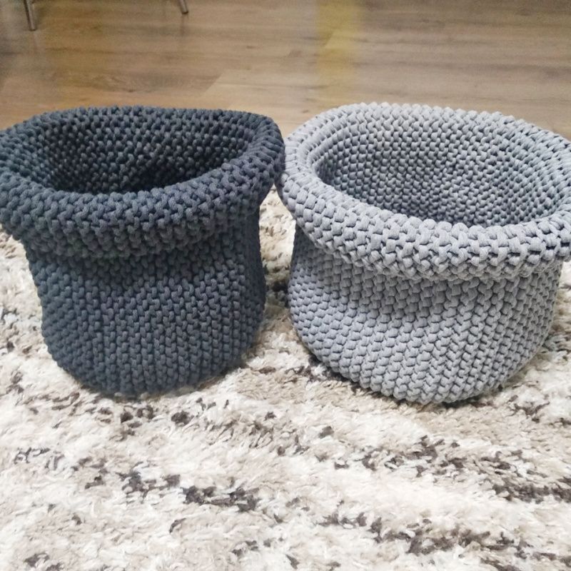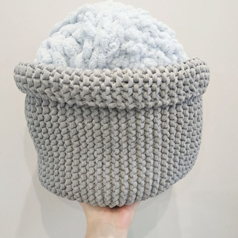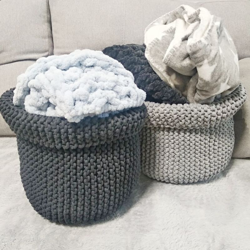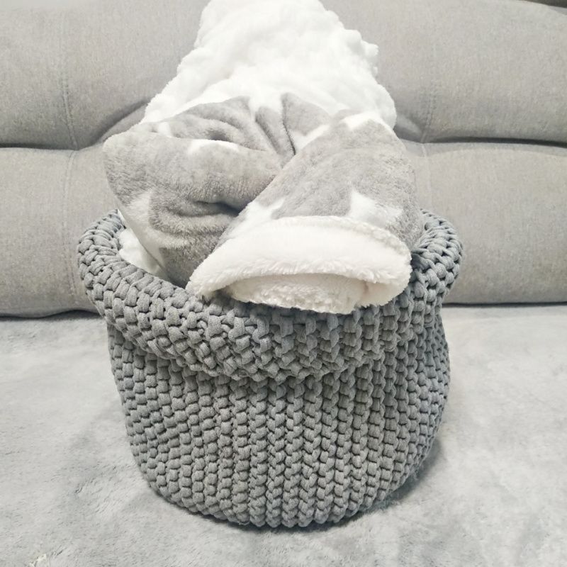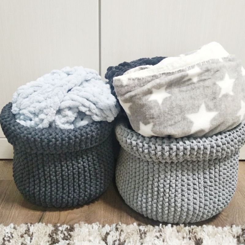 Вязаная корзинка для интерьера ручной работы, связная из трикотажной пряжи. Идеально подходит для хранения вещей, игрушек и текстиля.