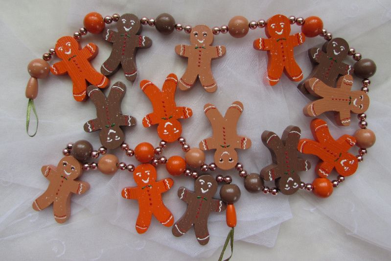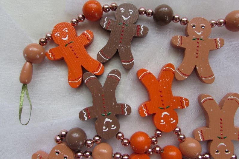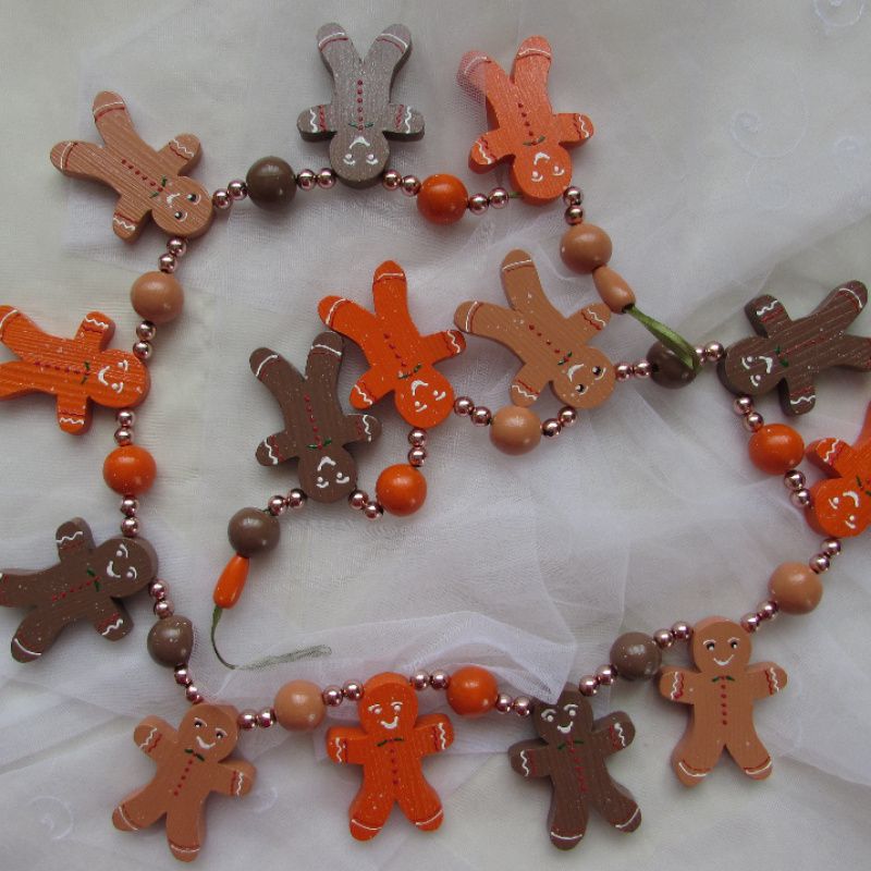 Гірлянда дерев'яні чоловічки ручної роботи. У роботі використовувалися матеріали на водній основі, які безпечні для здоров'я людини. Гірлянда надасть особливої святкової атмосфери в будинку, також гірлянду можна подарувати на Новий рік та Різдво. Гірлянда складається з 14 дерев'яних чоловічків, які з'єднані між собою шовковою стрічкою, великими дерев'яними намистинами та пластиковими намистинами. Людини прикрашені вручну із двох сторін. Довжина гірлянди 1,3 м