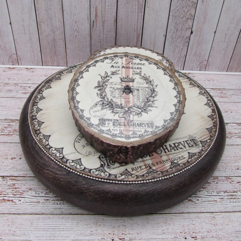 Набір подарунковий: дошка для нарізки і подачі з сосни, дві підставки під чашки або склянки, спіл горіха. На спилах кора не порушена. На дошці одна сторона робоча, на ній можна різати, оброблена мінеральним маслом для кухонних дощок. Чудовий еко набір буде прекрасний подарунком на будь-яке свято. Набір зроблений в стилі монохром.