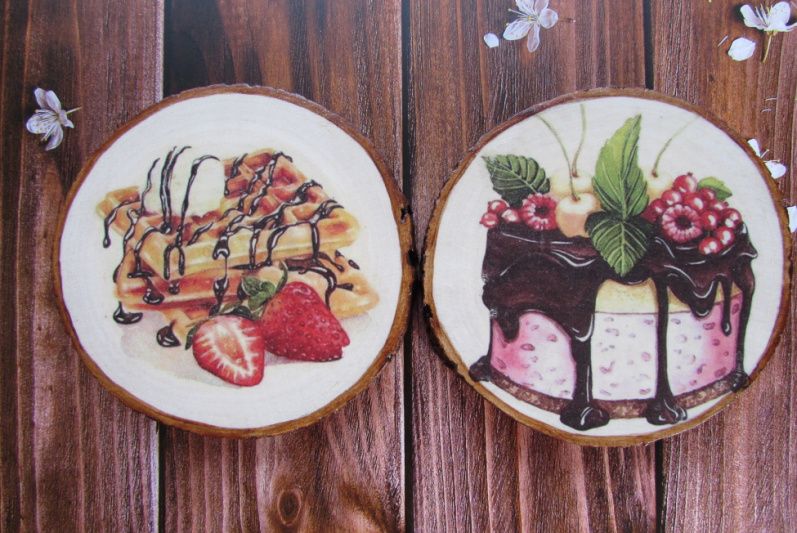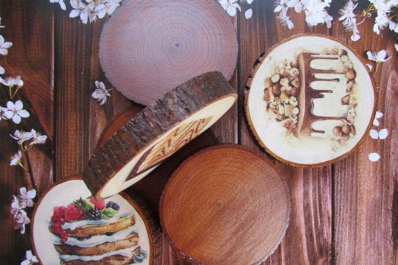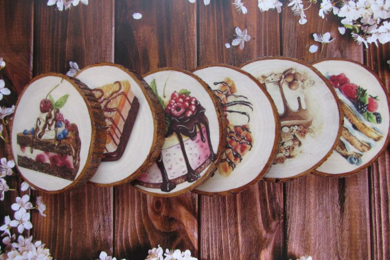 Підставки під чашки і стакани потрібна річ в кожному будинку. Підставки під чашки можна подарувати близьким людям не тільки на свято, але і просто зробити приємний сюрприз близькій людині. Подставочки з спила ясена декоровані в техніці вживлення картинки в дерево, морения деревини. Оригінальність підставок в тому, що з боків не порушена кора дерева. Зробіть приємний сюрприз своїм рідним і друзям! В наявності 6 шт. Ціна вказана за одну