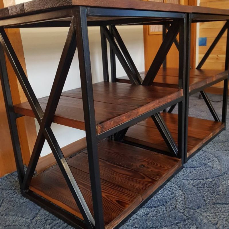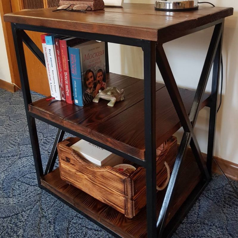 Оригінальний предмет інтер'єру для спальні, дитячої чи вітальні. У стилі лофт, натуральне дерево, основа метал (квадрата). Додатково можна замовити скриньки.