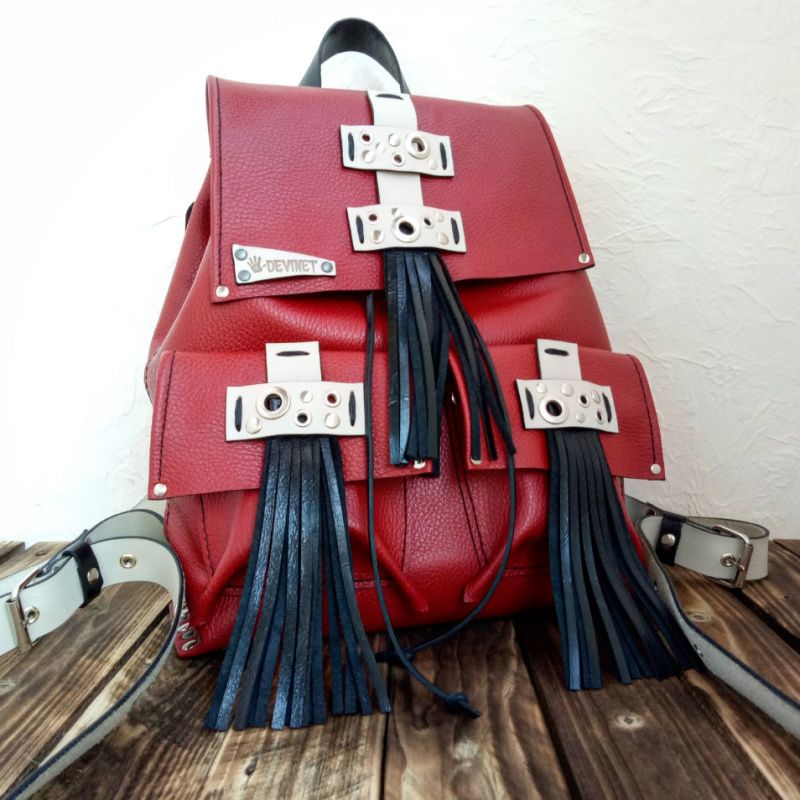 Рюкзак "Triad" дуже місткий, а кишені роблять його ще функциональней. Рюкзак виготовлений з італійської шкіри чудової якості. Якісна фурнітура, колір нікель. Має 5 кишень (2 внутрішні і 3 зовнішні). Закривається на шнурок і кнопку на клапані. Розміри: ширина 36, висота 35, дно 26 * 9 см. Зшитий повністю вручну (ручний шов). Авторська робота. В єдиному екземплярі.
