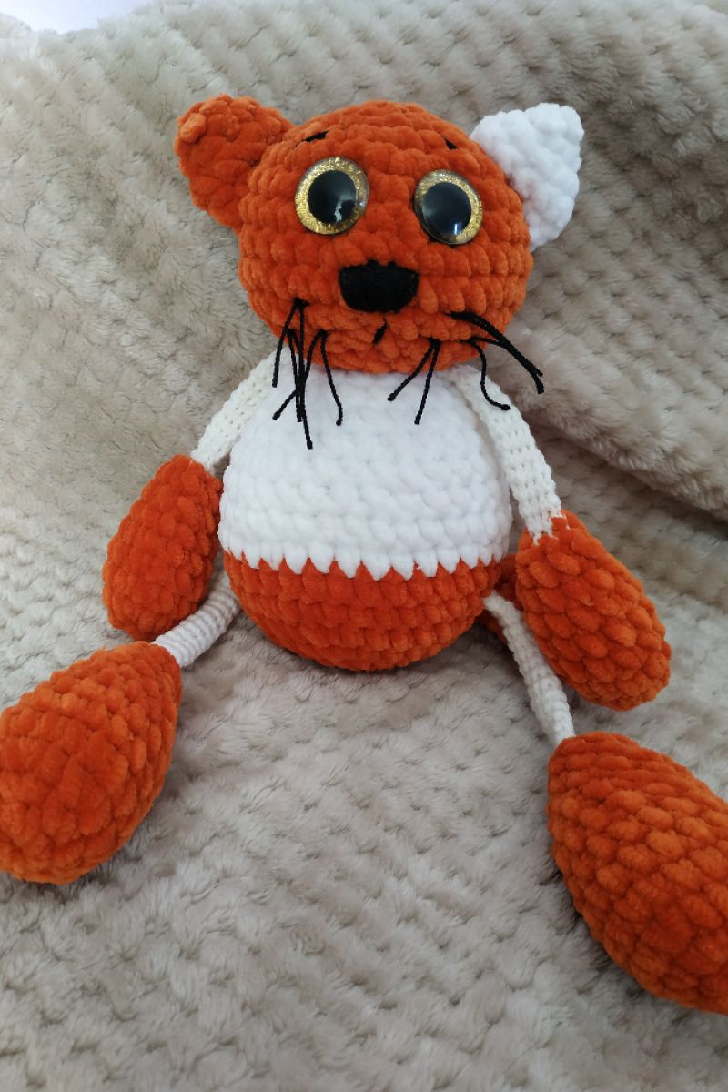 Рудий плюшевий кіт, прикольний і дуже м'який, обов'язково порадує малюка. Іграшка виконана з дитячої плюшевою пряжі, великі блискучі очі на безпечному кріпленні.