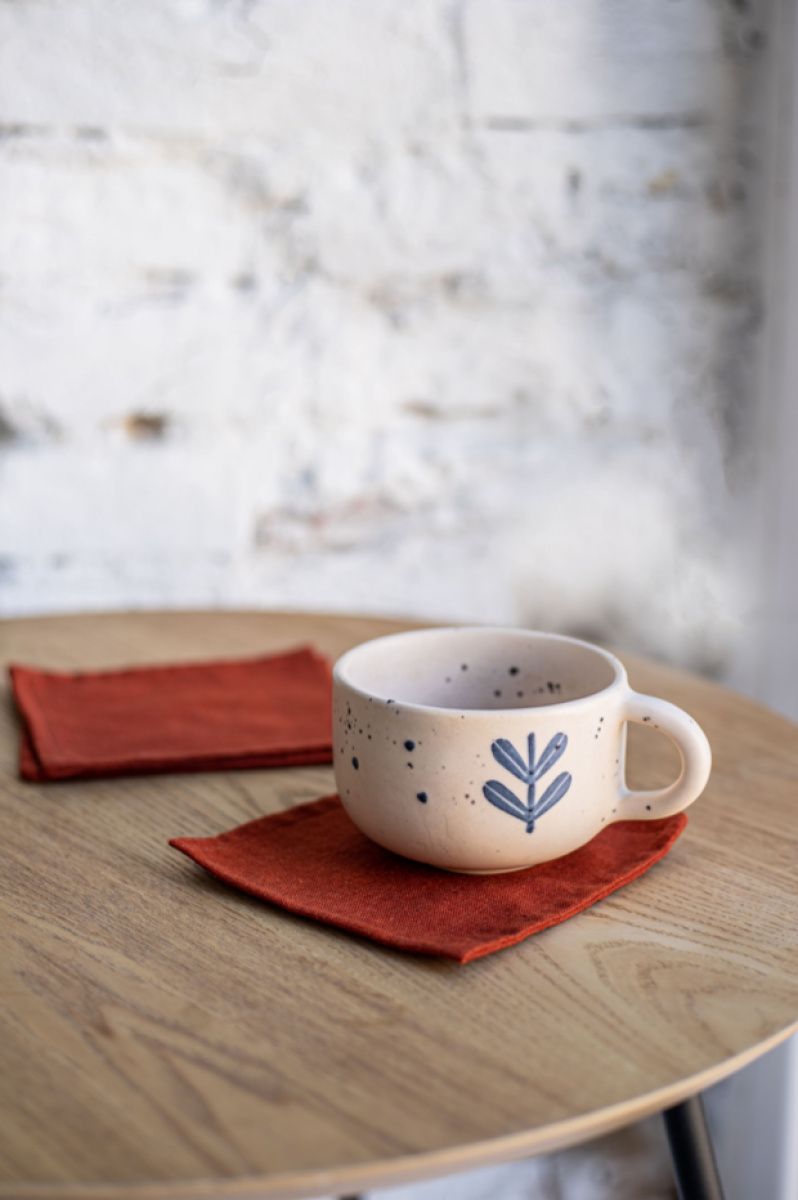 Підставкв під чашку 100% льону. Вироби з льону довговічні і прості у догляді. Льон - міцний, дихаючий та антисептичний матеріал. Тканина гіпоалергенна і має терморегулюючі властивості.