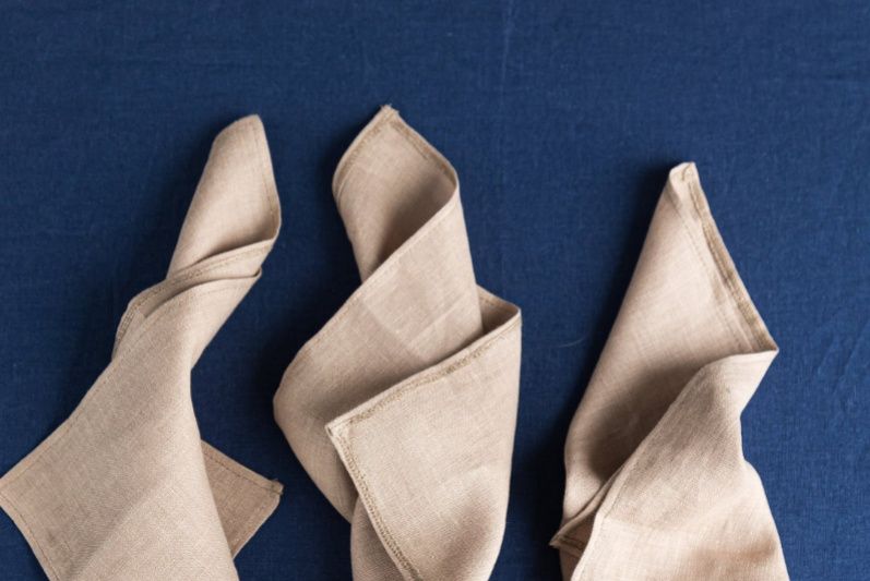 "Серветка для сервірування столу з 100% льону. Тканина сертифікована OEKO-TEX. Вироби з льону довговічні і прості у догляді. Льон - міцний, дихаючий та антисептичний матеріал. Тканина гіпоалергенна і має терморегулюючі властивості.
