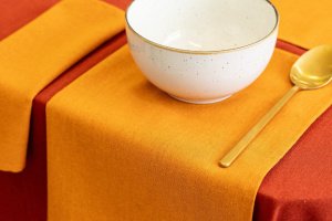 "Серветка для сервірування столу з 100% льону. Тканина сертифікована OEKO-TEX. Вироби з льону довговічні і прості у догляді. Льон - міцний, дихаючий та антисептичний матеріал. Тканина гіпоалергенна і має терморегулюючі властивості.