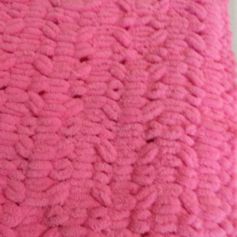 Дитячий плед виплетений руками з пряжи Алізе Пуфи, плюшевий, крупна в*язка, Колір- ярко рожевий, розмір-90*90 см. Плед запакован у сумку на молнії з прозорим силіконовим вікном в маленьку сніжинку. У подарунок до пледу- дитяче безалергенне мило на основі олії болгарської рози, 100 гр в оригінальній упаковці, виробництва Болгарія.
