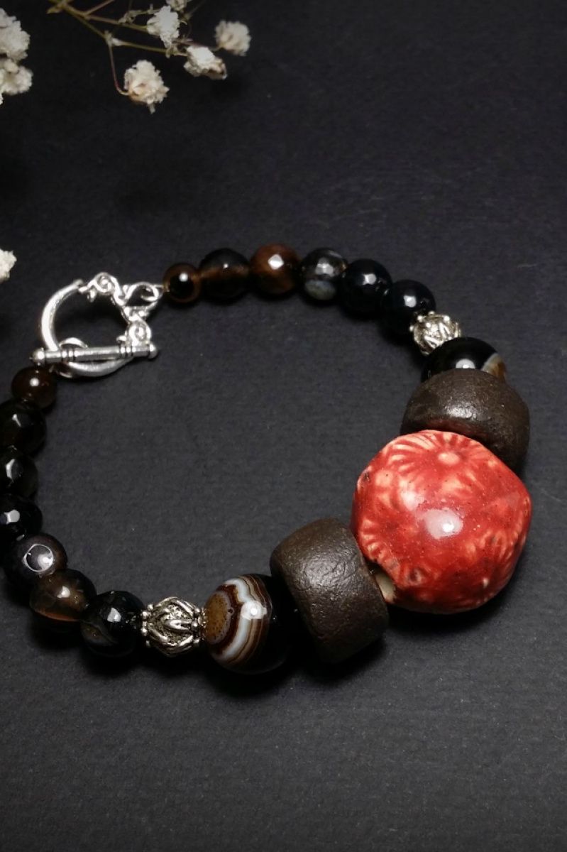моя кераміка, агати, фурнітура з біжутерного сплаву на 16-18 см.
