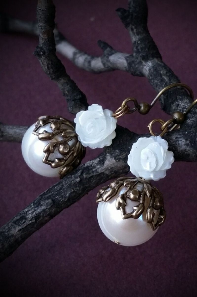 латунь, позолота з оксидуванням по латуні, перли, перламутр 3.8 / 1.3 см.