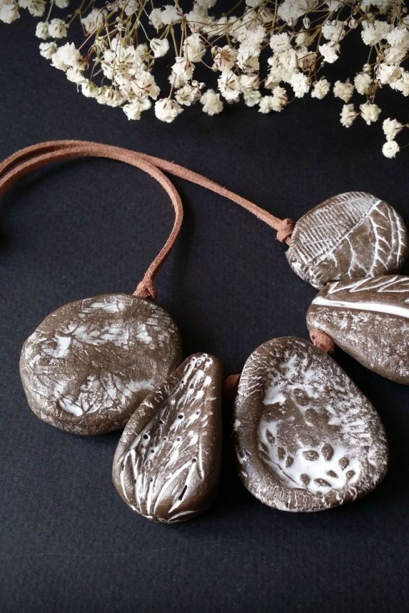 авторська кераміка ручної роботи з чорної глини і білої глазурі, шнур 60 см.