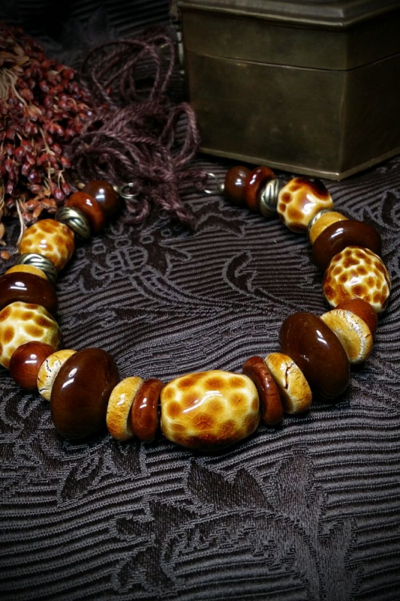 кераміка ручної роботи, трос із пам'яттю форми, пластик, шнур Декоративна частина 25 см. Повна довжина 115 см.
