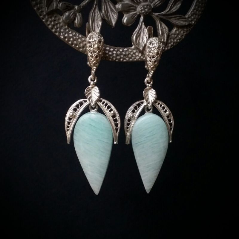 амазоніт, срібло 925 проби 5,8\1,9 см.