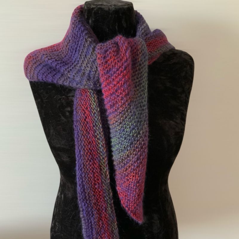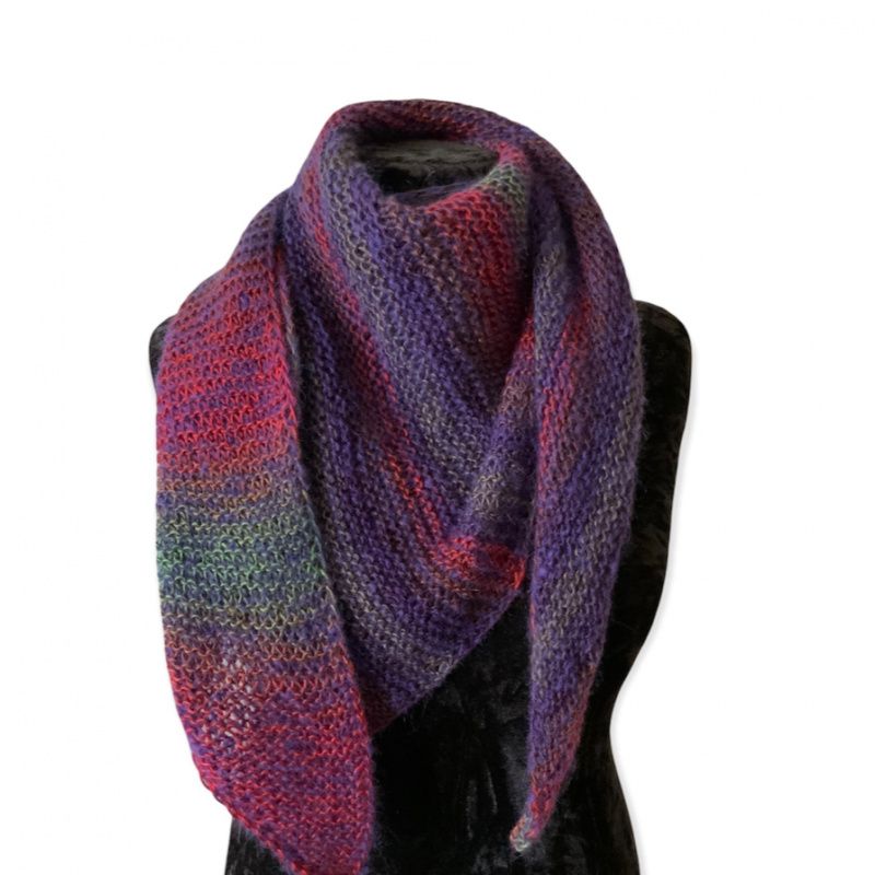 Яскрава і дуже тепла м'яка шаль в красивих відтінках фіолетового і бордового. Такий теплий хустку зручний як з пальто, так і з курткою або дублянку. Прекрасний подарунок і відмінний зимовий аксесуар. Розмір 190 * 80.