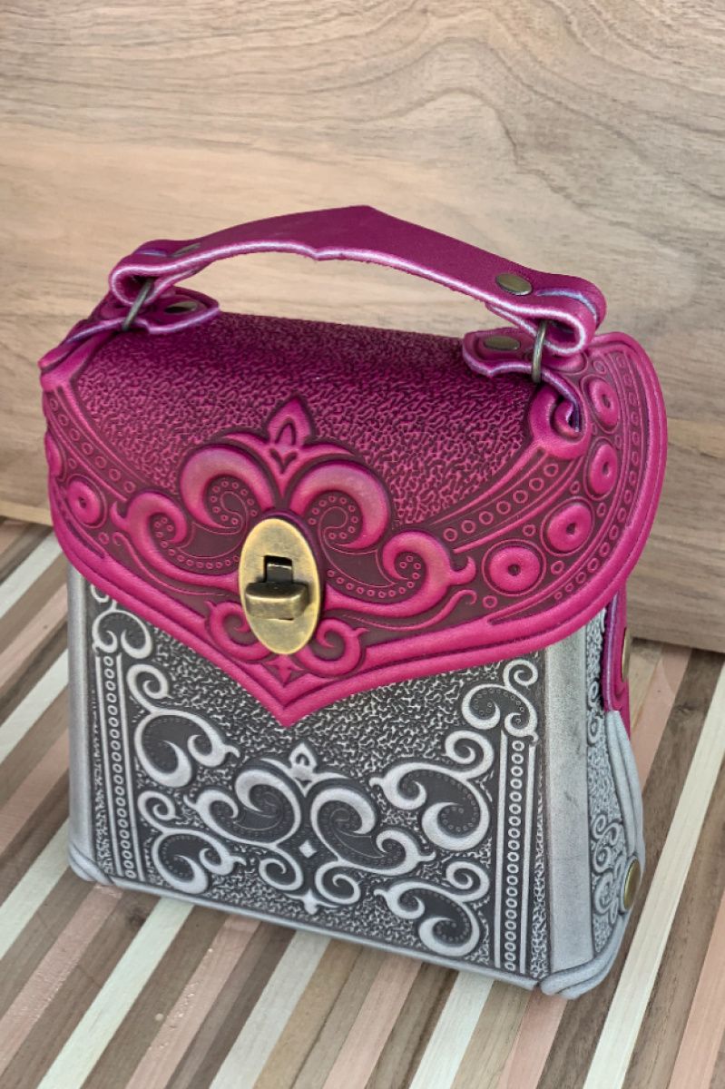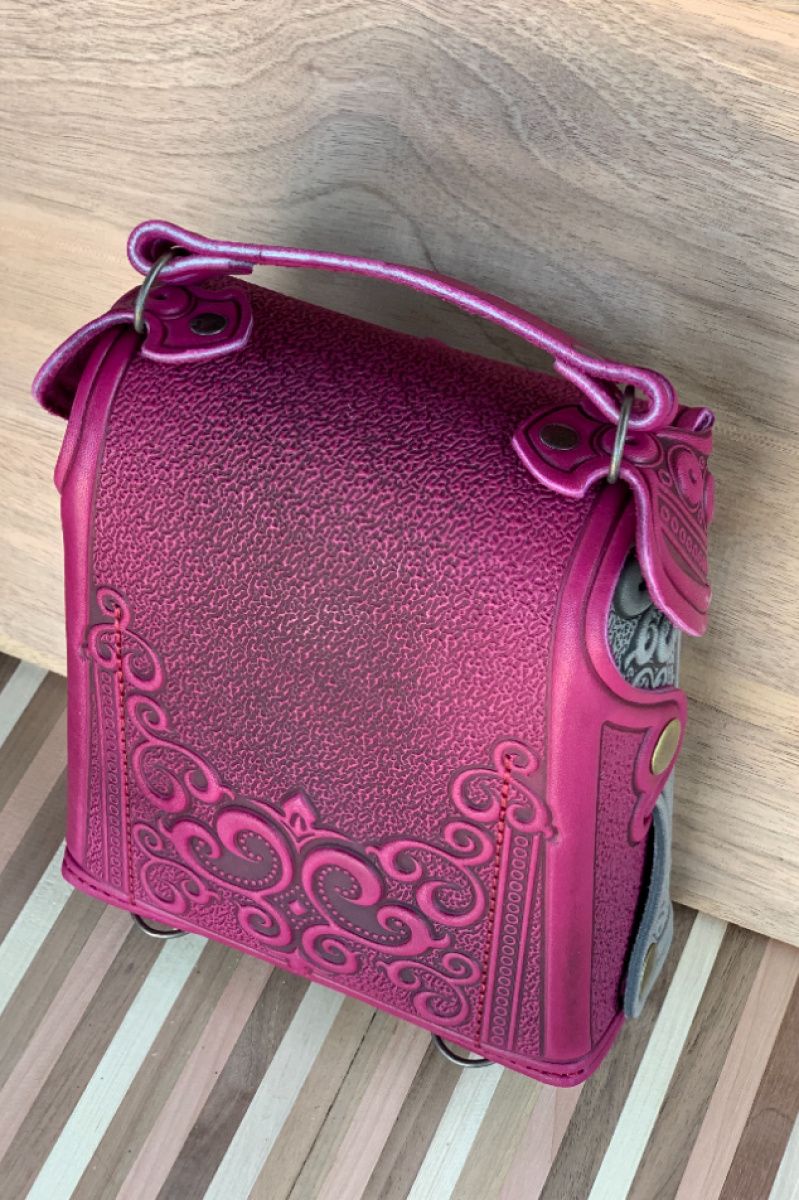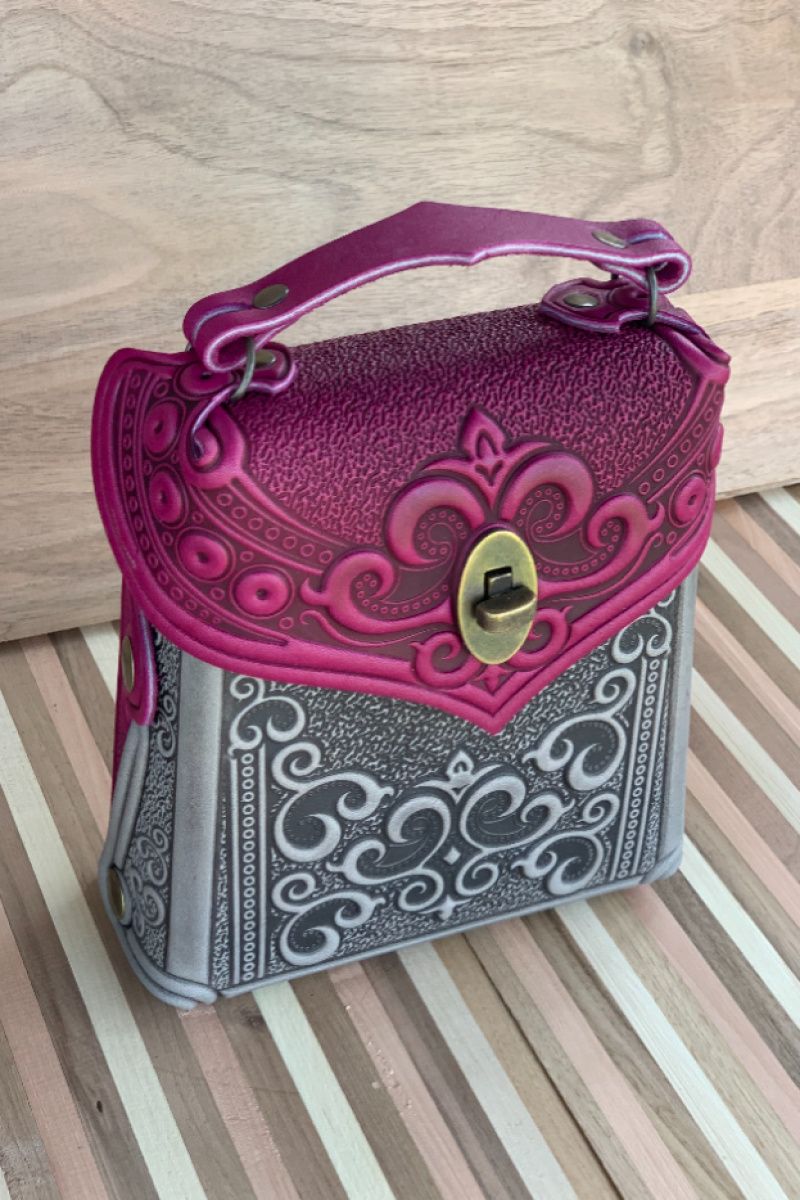 Сумка - рюкзак через плече. Техніка виконання: тиснення на натуральній шкірі.