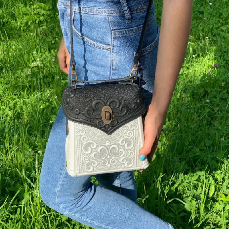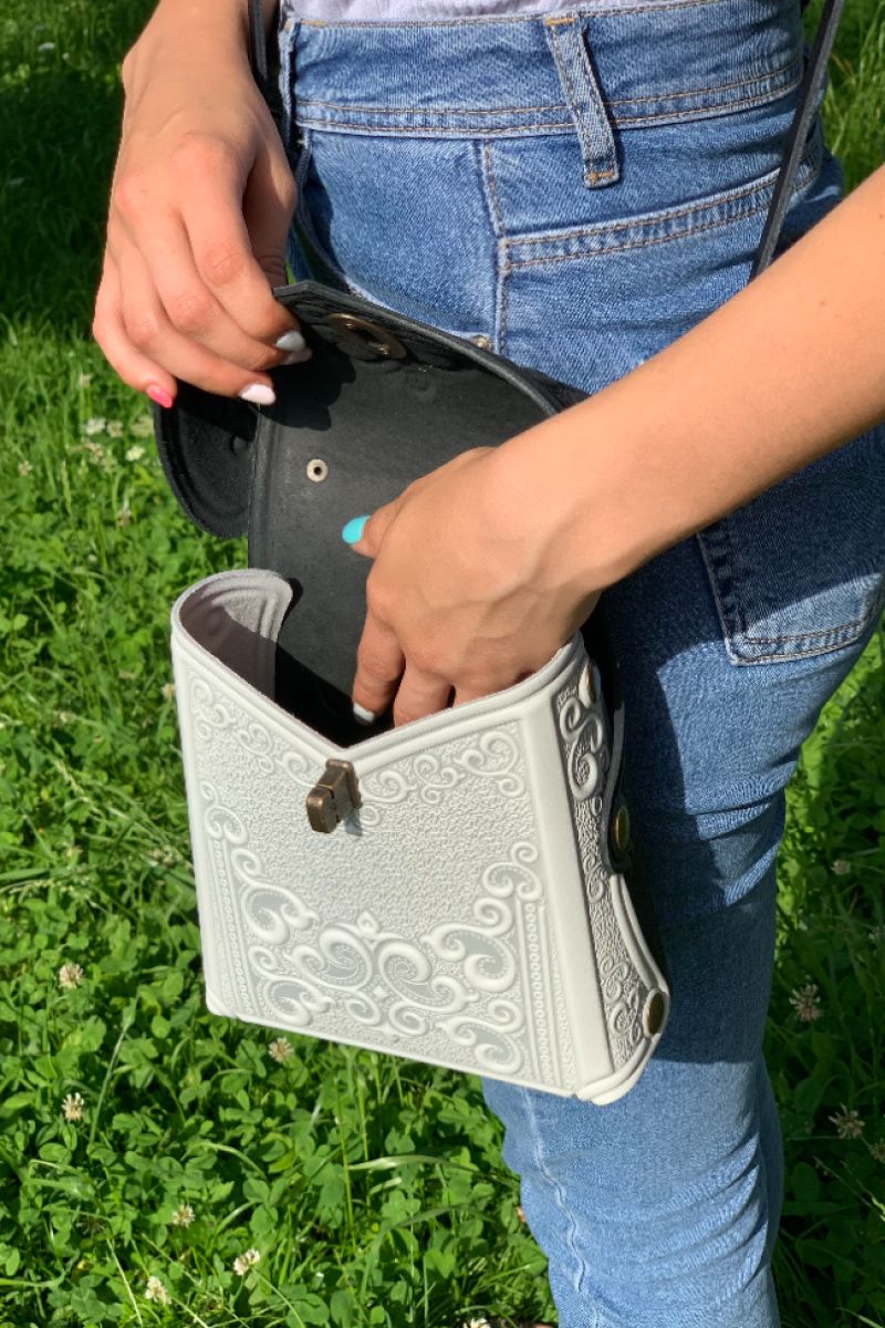 Сумочка твердої конструкції виконана з ремінної шкіри. Згодом від використання шкіра стане м'якше, набуде більш природніший колір. Сумочка довговічна буде носитися роками..