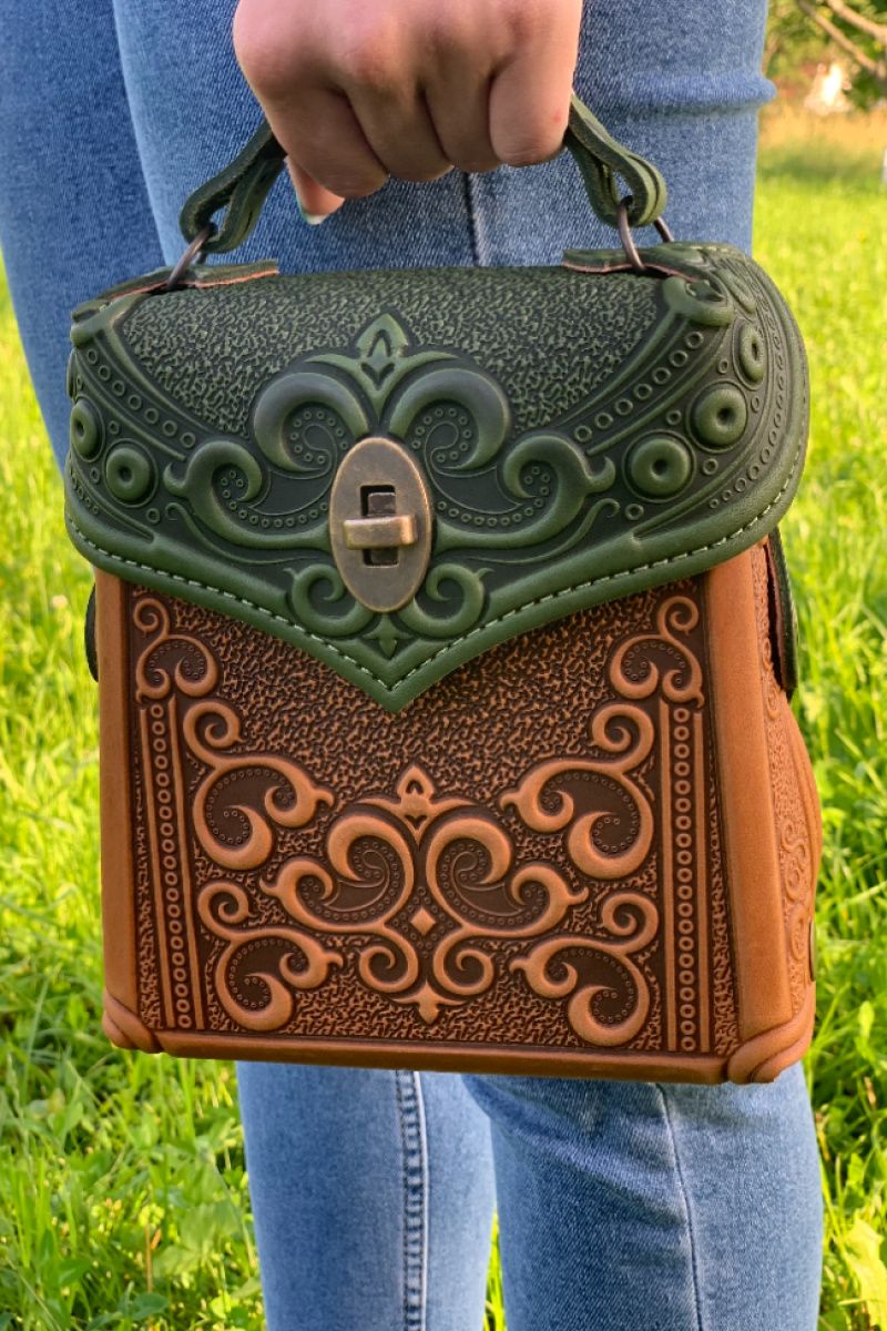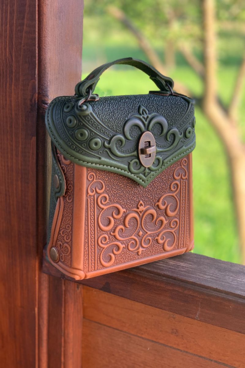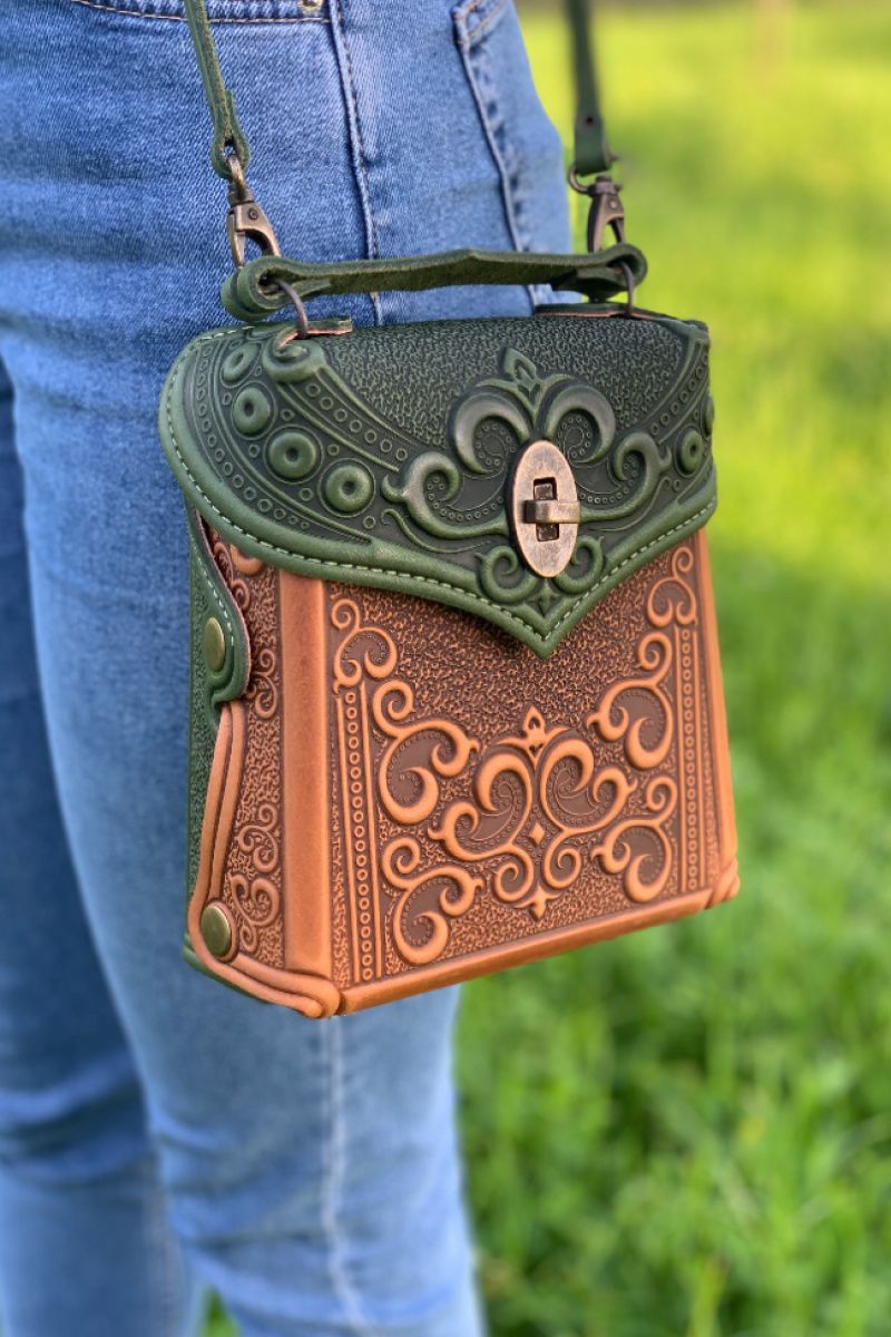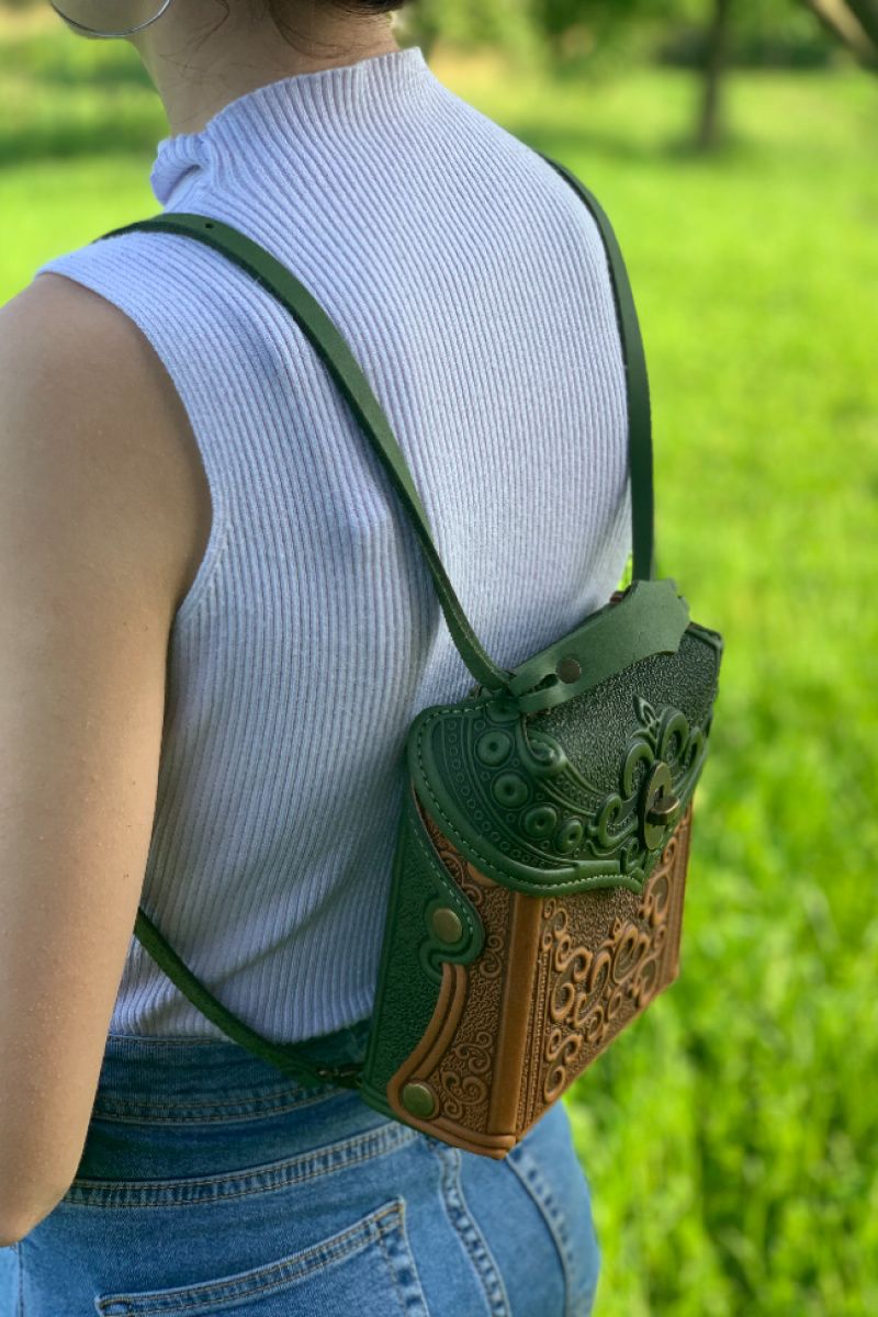 Сумка - рюкзак через плече. Техніка виконання: тиснення на натуральній шкірі.