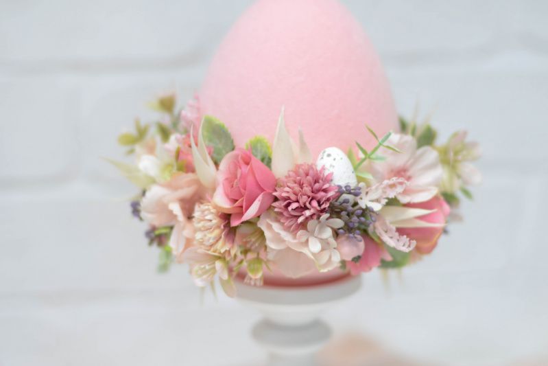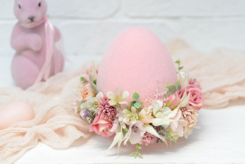 Декоративне велюрове яйце з квітковим декором. Квіти та зелень преміум якості!!Єдиний екземпляр!!