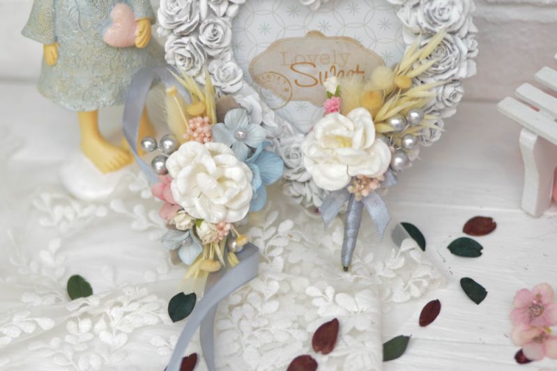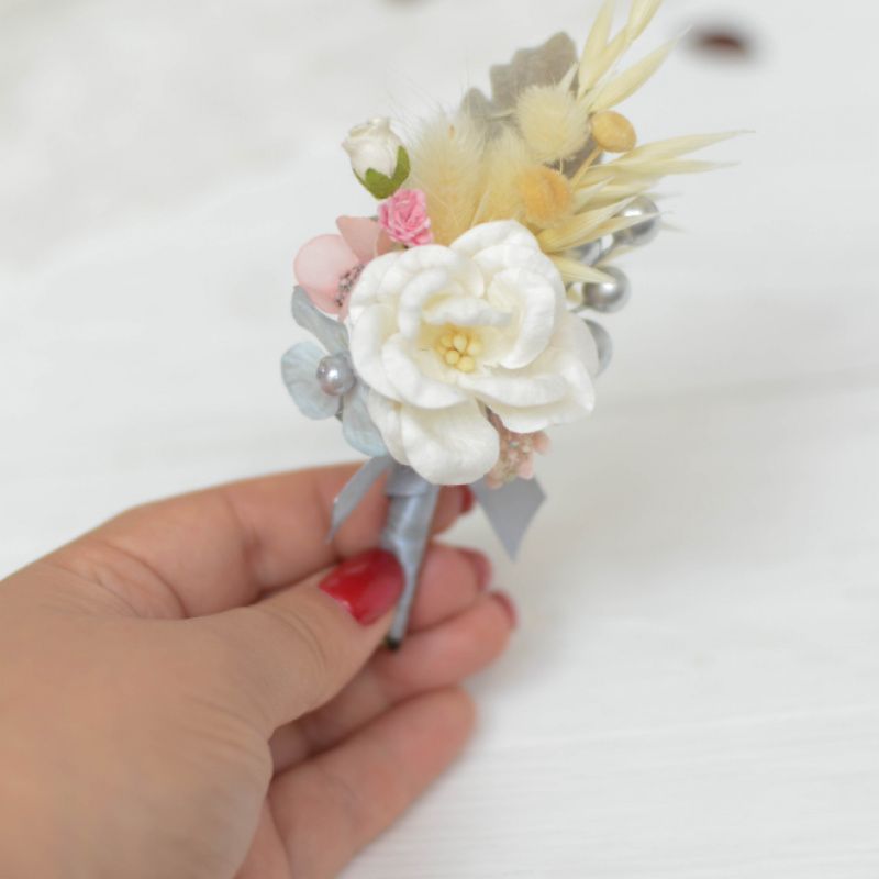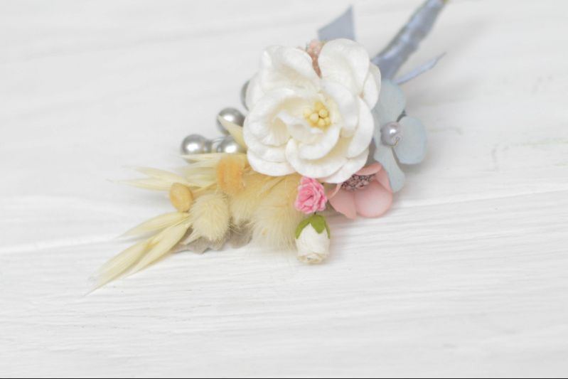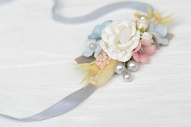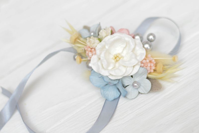 Дивовижна розкішна бутоньєрка з квітами, з зеленню і ягодами на атласній стрічці. Комплект 1 бутоньєрка і 1 браслет браслет: 1,2 см шириною * 0,7 м 12 * 7 см бутоньєрка 13 * 6 см стрічка атласна