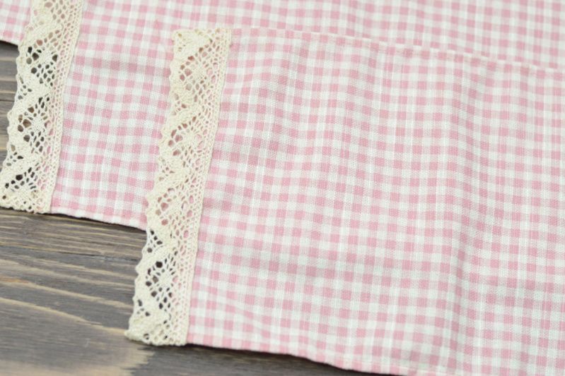 Серветка на кошик з мереживом 18 * 32см. рожева клітина