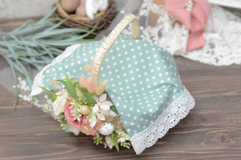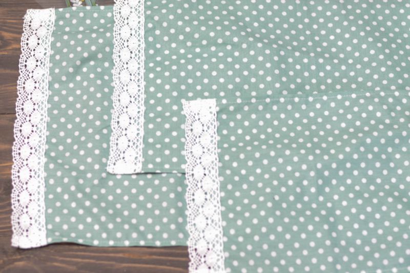 Серветка в горох на кошик з мереживом 33 * 24см. м'ятна