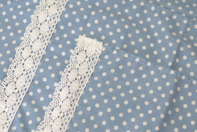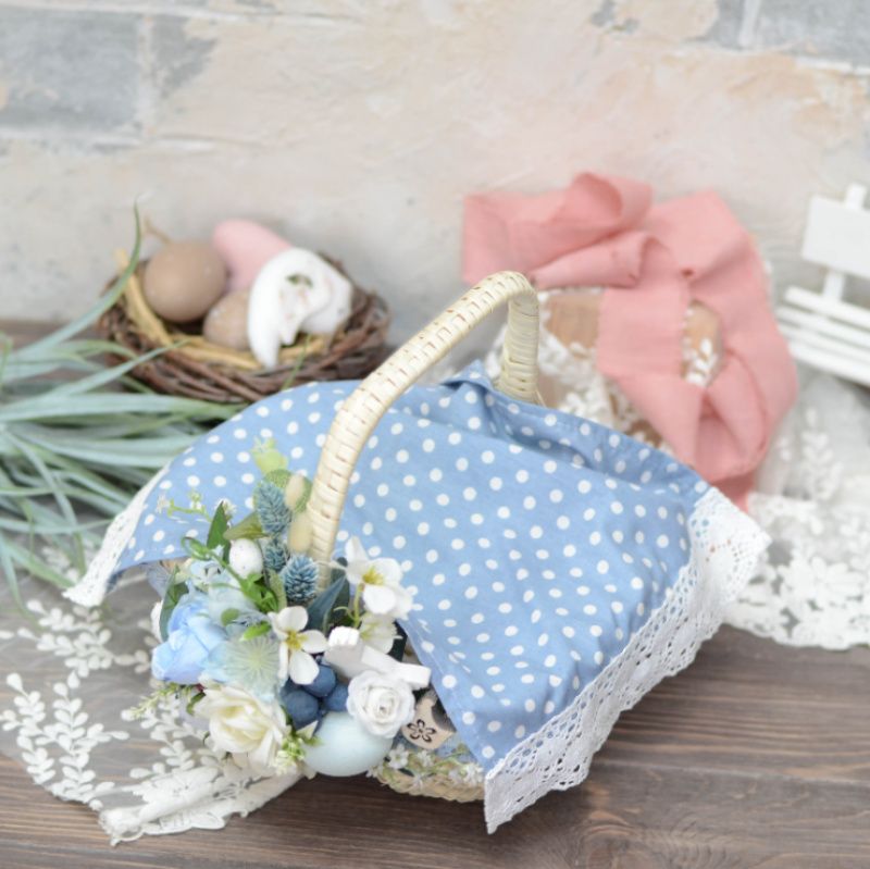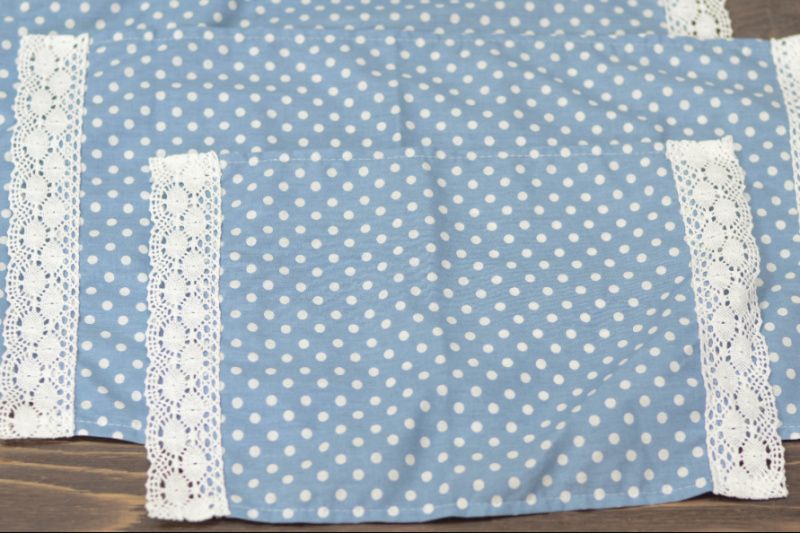 Серветка в горох на кошик з мереживом 48 * 27см. блакитна