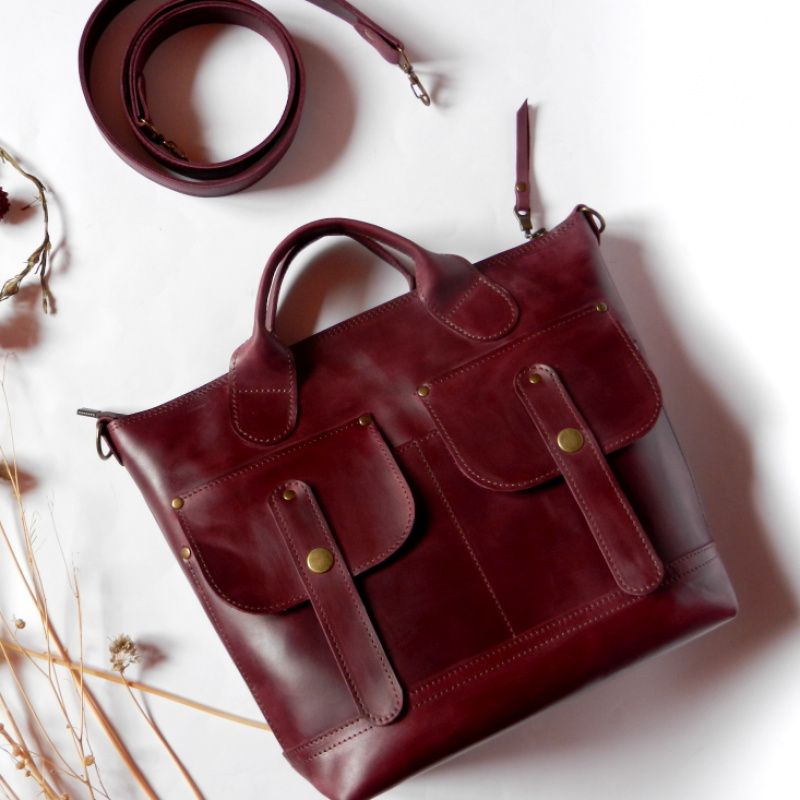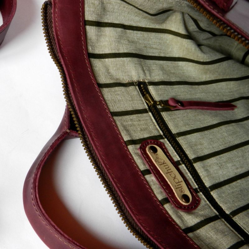 Сумка пошита зі шкіри крейзі хорс. Цю шкіру я можу вихваляти нескінченно - виглядає дуже самобутньо, а природні тріщини-подряпини надають їй ще більше шарму ... Згодом шкіра стає ще кращою. До того ж вона дуже зносостійка. Сумка відмінно тримає форму. Дно ущільнено додатково. Застібається на блискавку YKK. Спереду дві накладних кишені. Короткі ручки для носіння в руці. І пристібний довгий ремінь для носіння на плечі. Всередині підкладка з натурального льону в смужку. Є дві відкритих кишені і одна на блискавці. __________________ Можна замовити сумку в іншому кольорі .