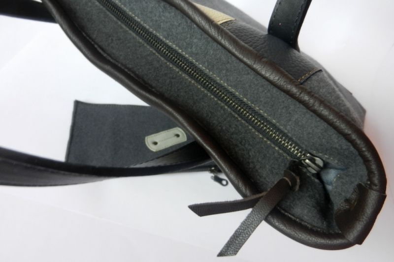 Незамінна супутниця для міста ... Помістить все, що вам потрібно і навіть більше, при цьому не втратить форму і не буде виглядати громіздко. Зшита сумка з шинельного сукна і натуральної шкіри (колір шкіри за вашим бажанням). Застібається на блискавку. Ручки шкіряні. Сірий подклад простьобаний з синтепоном - там тепло і затишно. Всередині велика кишеня, який застібається на кнопку і ще один місткий на блискавці. Сумка виглядає однаково з обох сторін.