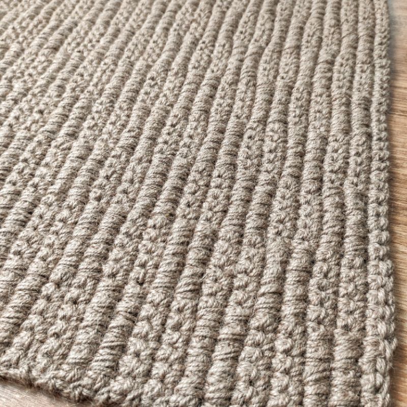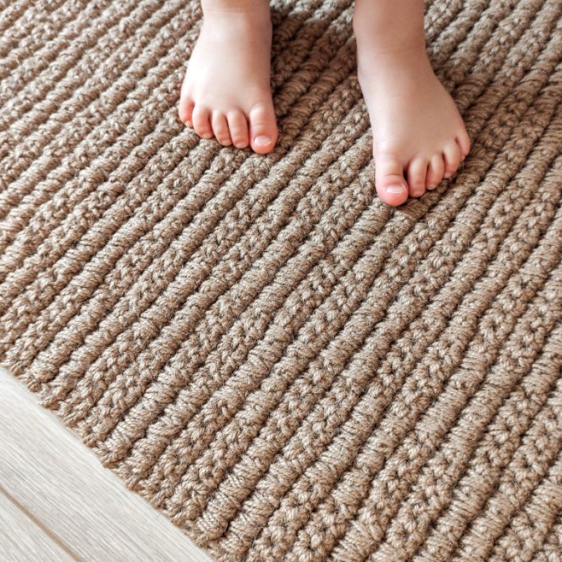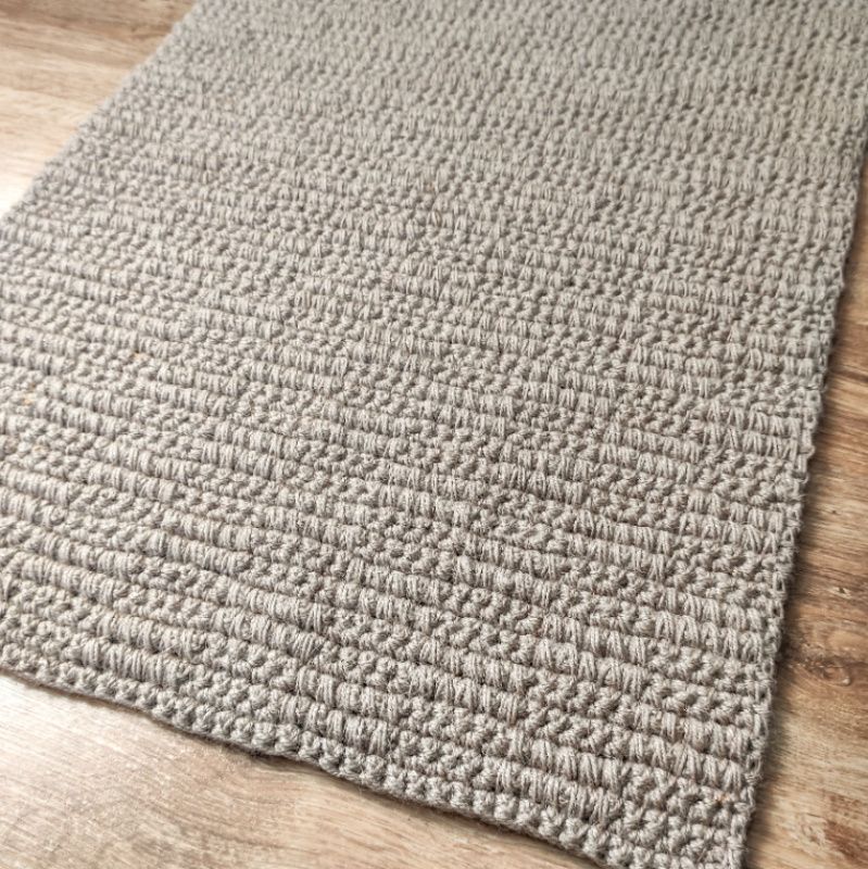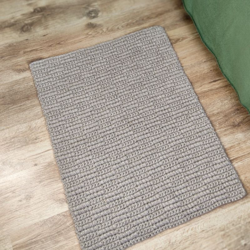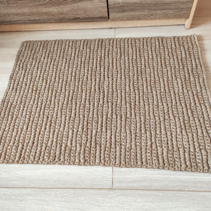Прямокутний килим Із джуту в'язаний гачком. Завдяки натуральному складу та природному кольору цього волокна, вироби з нього Ідеально вписуються в скандинавський, бохо, кантрі и еко стилі. Візерунок и структура джуту створюють масажний ефект, що доповнює користь таких виробів. Невеликі килими найчастіше використовують в спальні, зоні відпочинку, ванній чи дитячій кімнаті. Натуральний текстиль створить затишок и додасть частинку природи в вашу оселю