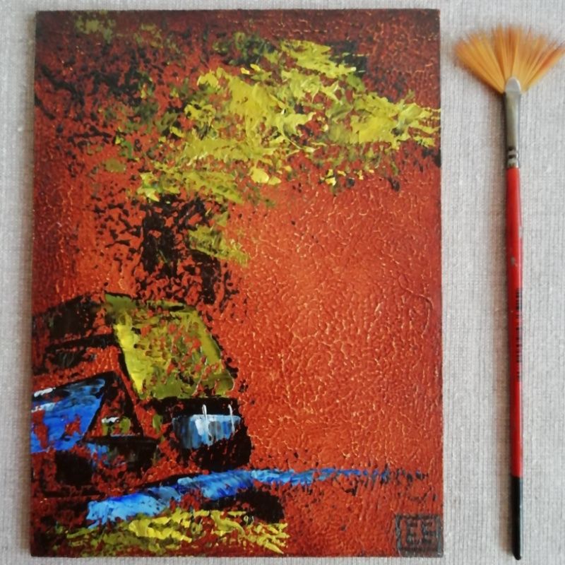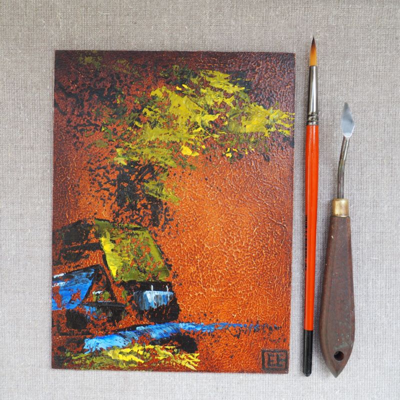 Абстрактний пейзаж 15 х 20 см • картина написана маслом на ґрунтованому ДВП • розмір 15 х 20 см • продається без рамки, потребує оформлення в багет та паспарту • зверніть увагу, що кольори можуть відрізнятися в залежності від налаштувань монітора. Але я гарантую, що кольори яскраві • відмінно підходить для подарунка і декору кімнати