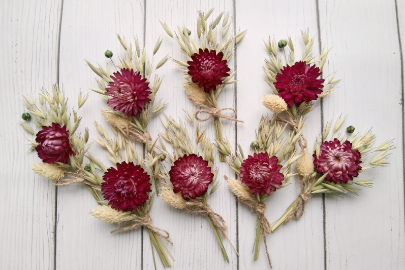 Бутоньєрки для гостей із сухоцвітами, є багато різних варіантів. Для вашого свята міні-букетики, бутоньєрки для гостей у стилі рустик. Багато хто полюбив цей стиль, натуральні квіти в гарній композиції. Ми дотримуємося унікального образу, щоразу щось нове. Вироби кріпиться на брошку, не обтягує одяг, дуже легкі та красиві, по фото не передати всю деталізацію та якісну роботу. Повністю ручна робота, зроблено акуратно та надійно. Творчі виріб можуть відрізнятися від фото, але в основному це на краще. Ціна вказана за одну бутоньєрку! Розмір: 14-17см.