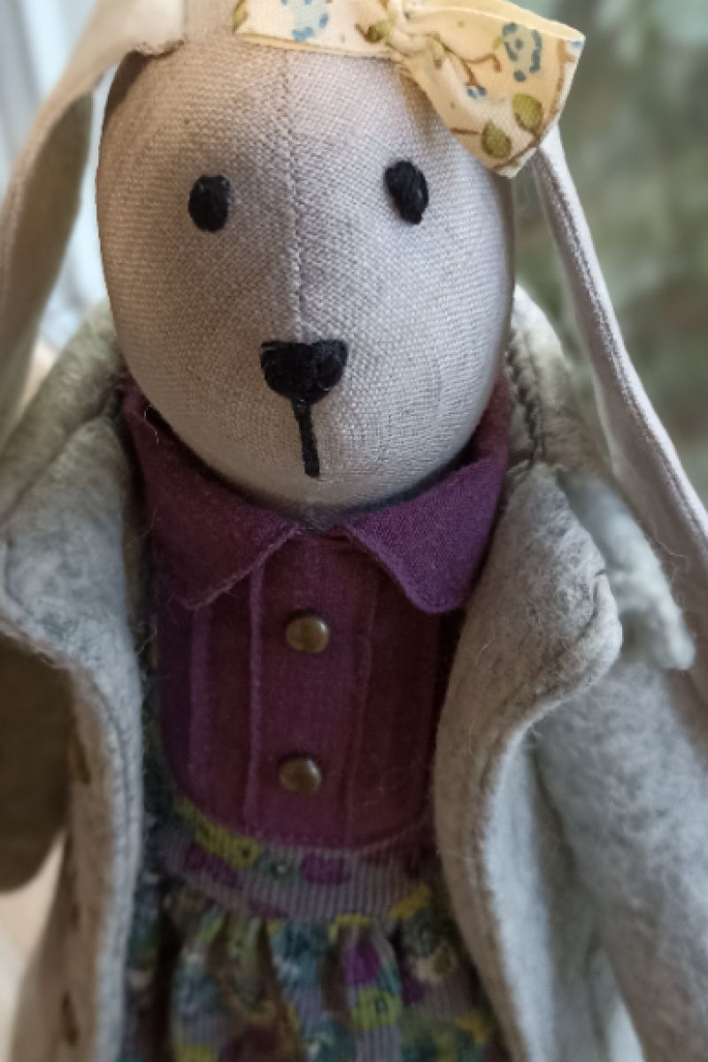 Виготовлення текстильних зайчиків ,висота від35-25см.спмостійно стоїть ношки ручки рухомі .Можна прати в пральній машині.Одяг можна замовляти
