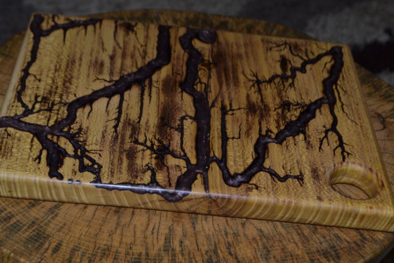Ексклюзивна обробна дошка з епоксидною смолою для подачі страв .Гладкая і дуже приємна на ощупь.Создана для того щоб на вашій кухні був присутній дух свободи і підкреслювала вашу індівідуальность.Каждая дошка має свій унікальний малюнок дерева і епоксидної смоли, тому ваша досочка унікальна і іншої такої нет.Доска робилася в ручну і покрита харчовим масло воском.